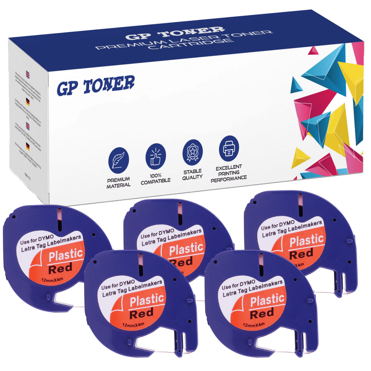 5 x Dymo LetraTag 59424 Klebeband, 12 mm x 4 m, roter Kunststoff – Ersatz für GP-DY59424 x5