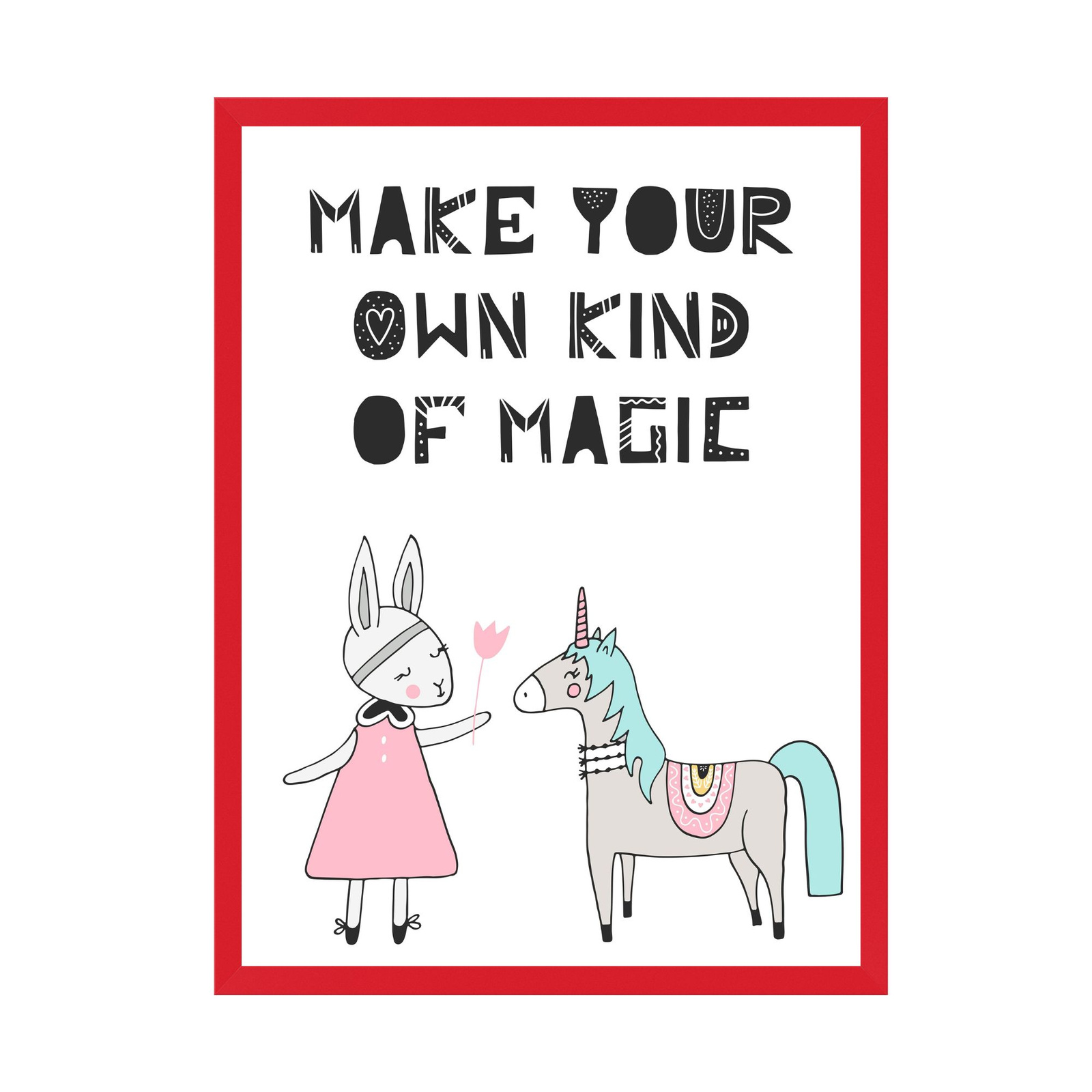 Kinderposter Machen Sie Ihre eigene Art von Magie 21X29,7 cm + roter Rahmen