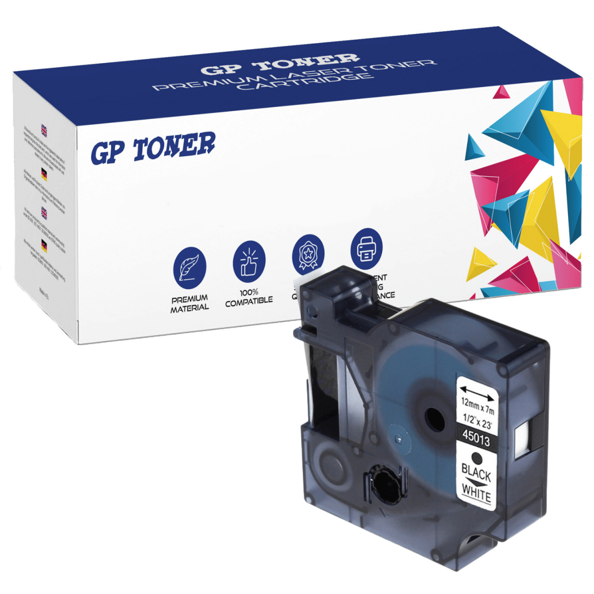 Klebeband für Dymo D1 45013, 12 mm x 7 m, weiß-schwarzer Aufdruck – Ersatz für GP-D45013