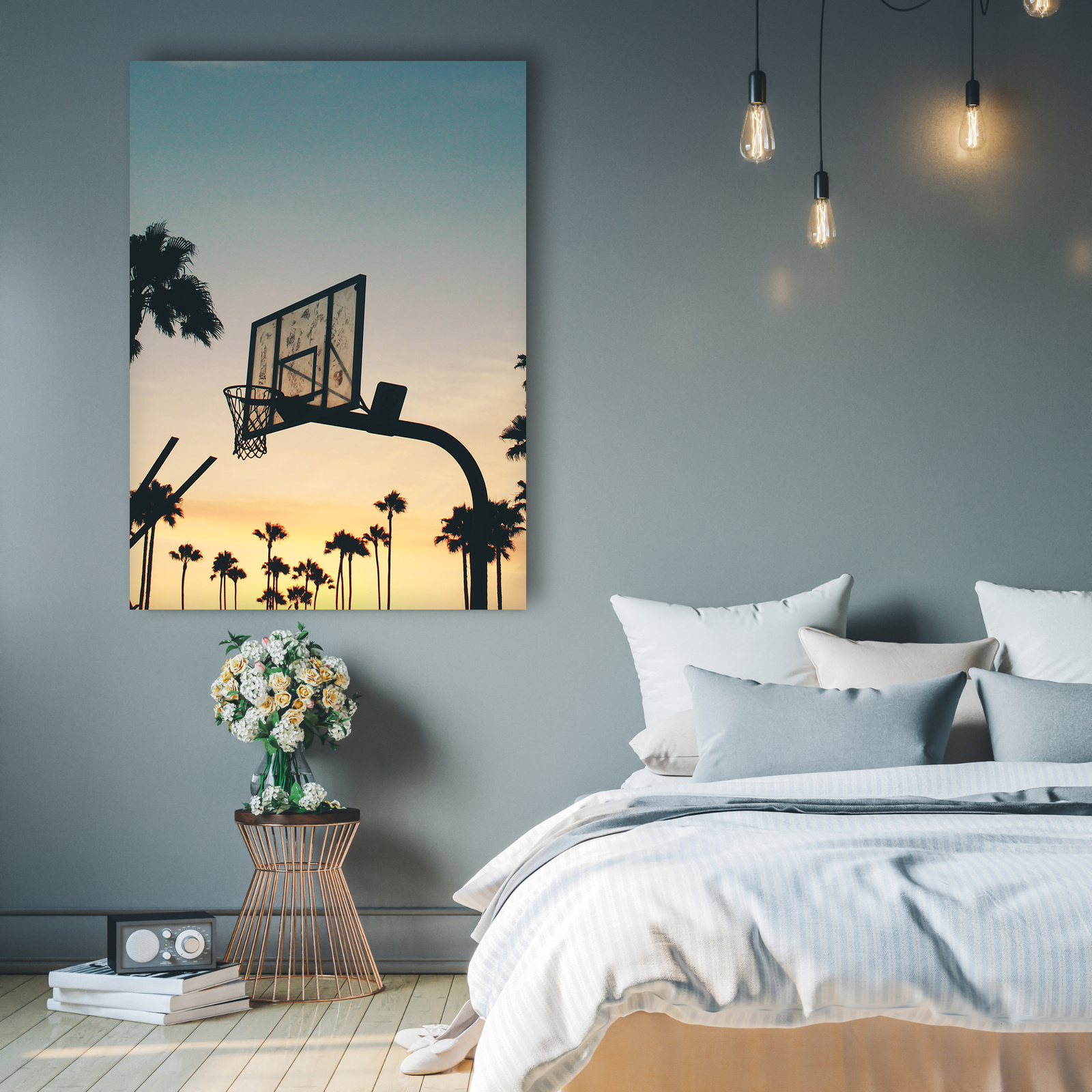 Leinwanddruck Jugend-Basketball-Sonnenuntergang 50X70
