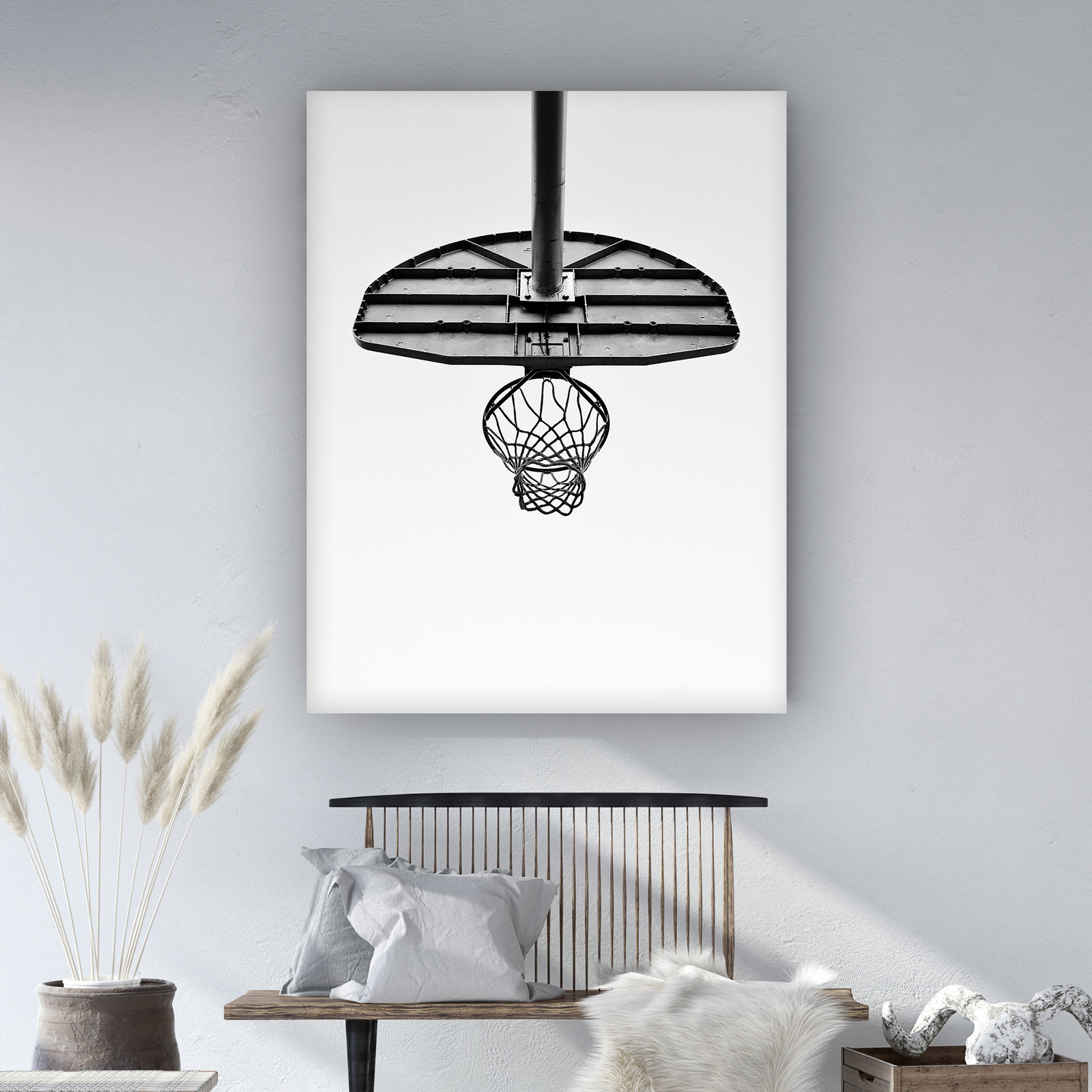 Leinwanddruck Jugendkorb Basketball Schwarz und Weiß 80x120