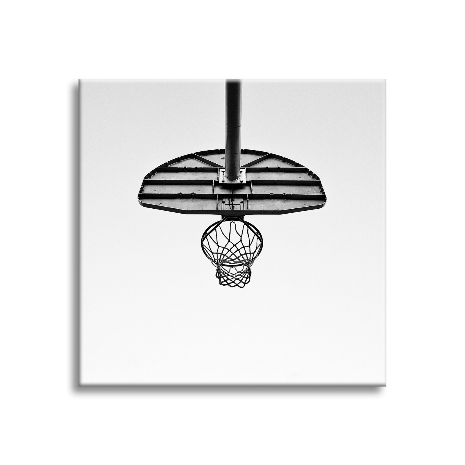 Leinwanddruck Jugendkorb Basketball Schwarz und Weiß 90x90