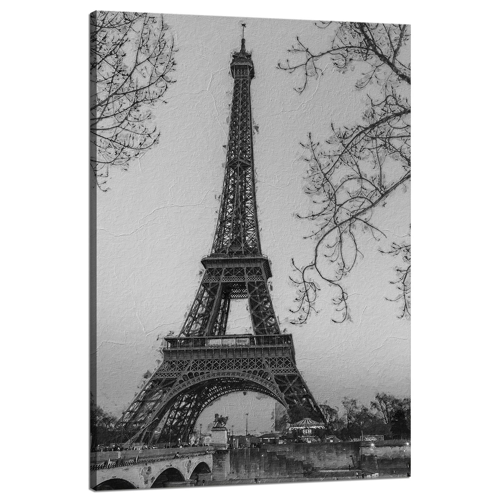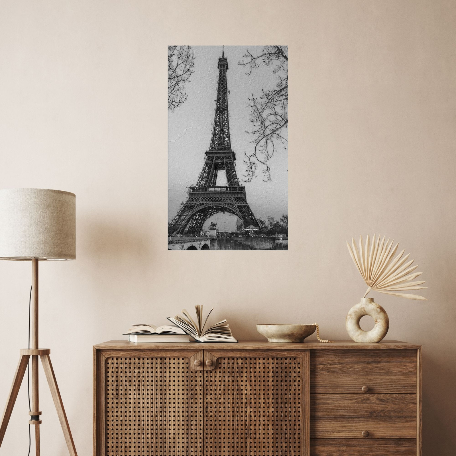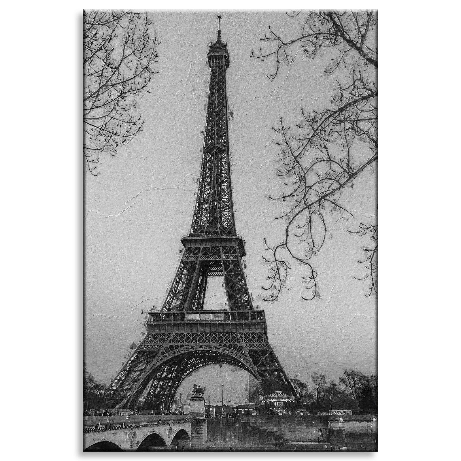 Leinwanddruck Schwarz-weißer Eiffelturm Frankreich Retro 80x120 cm