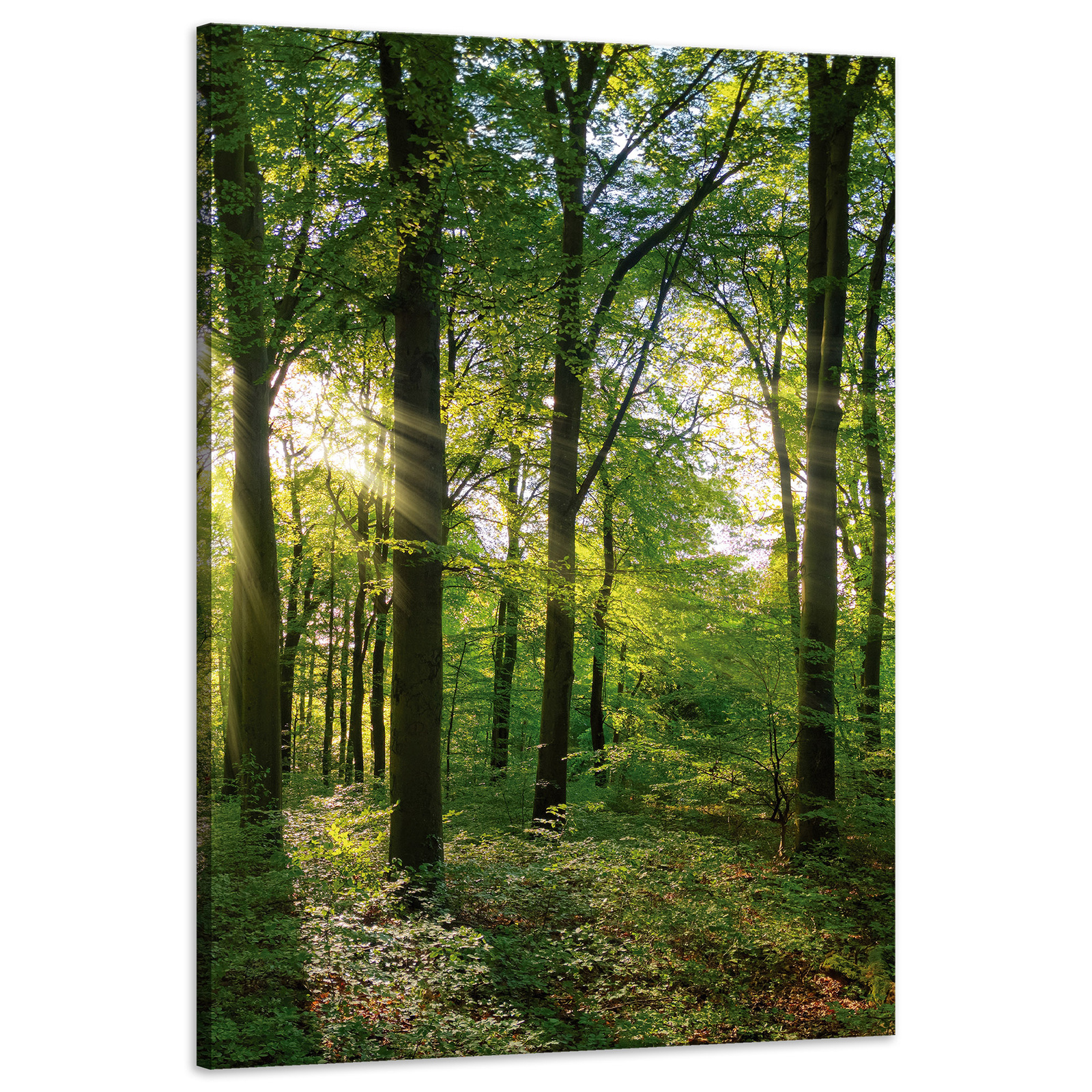 Leinwanddruck Sonne, Wald, Bäume, Lichtstrahlen, 60x90 cm
