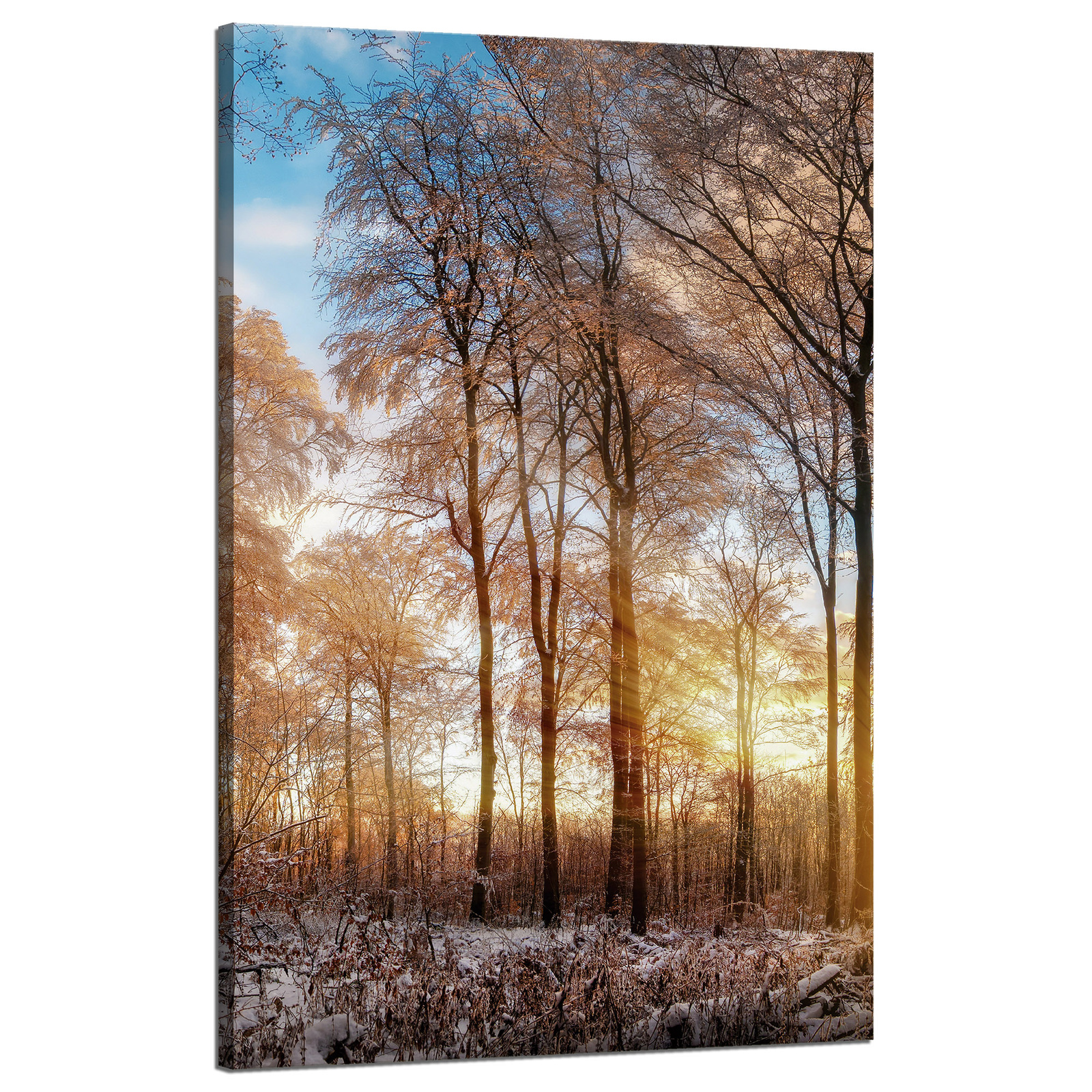 Leinwandgemälde Bäume Winter aufgehende Sonne 50x80 cm