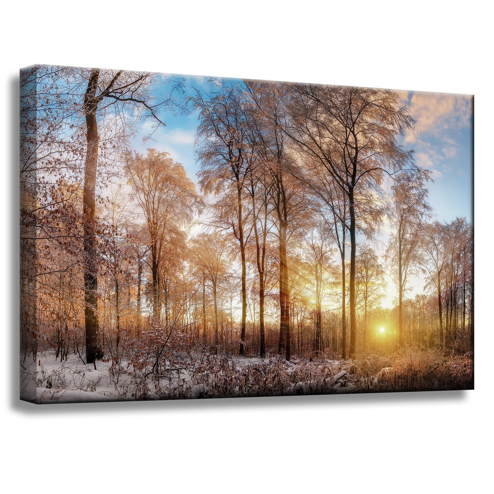 Leinwandgemälde Bäume Winter aufgehende Sonne 60x40 cm