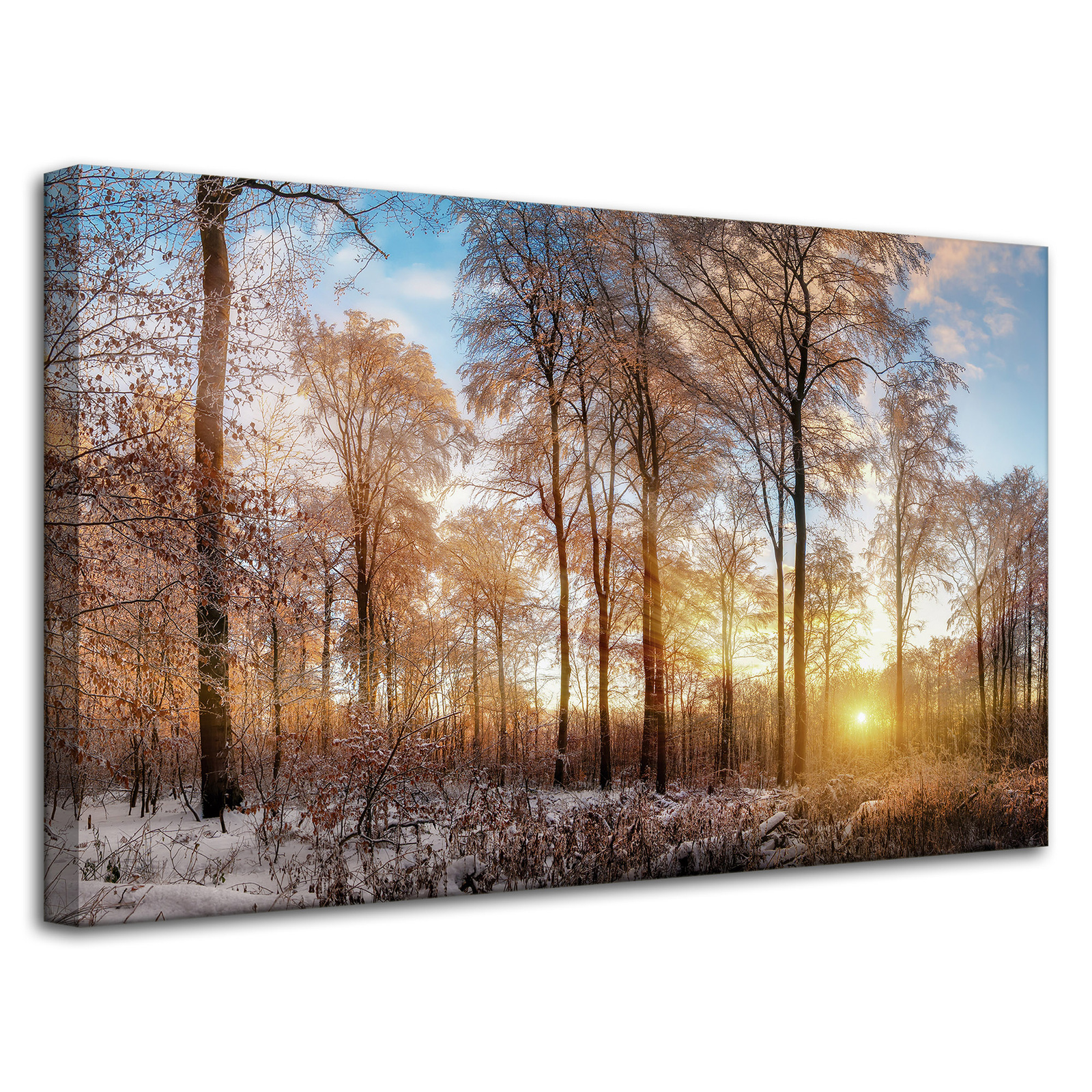 Leinwandgemälde Bäume Winter aufgehende Sonne 80x50 cm
