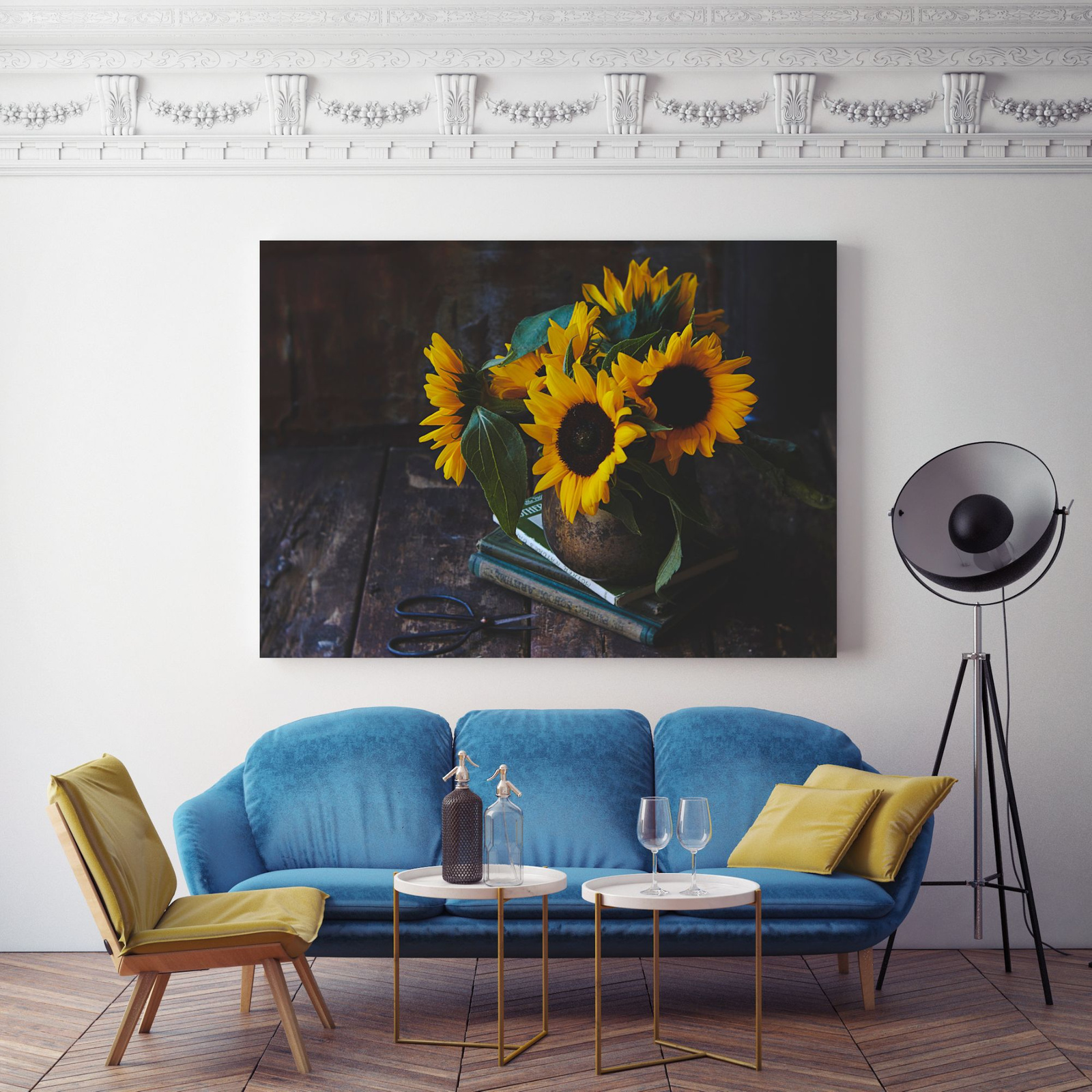 Leinwandgemälde Botanik Sonnenblumen in einer Vase 40x30 cm