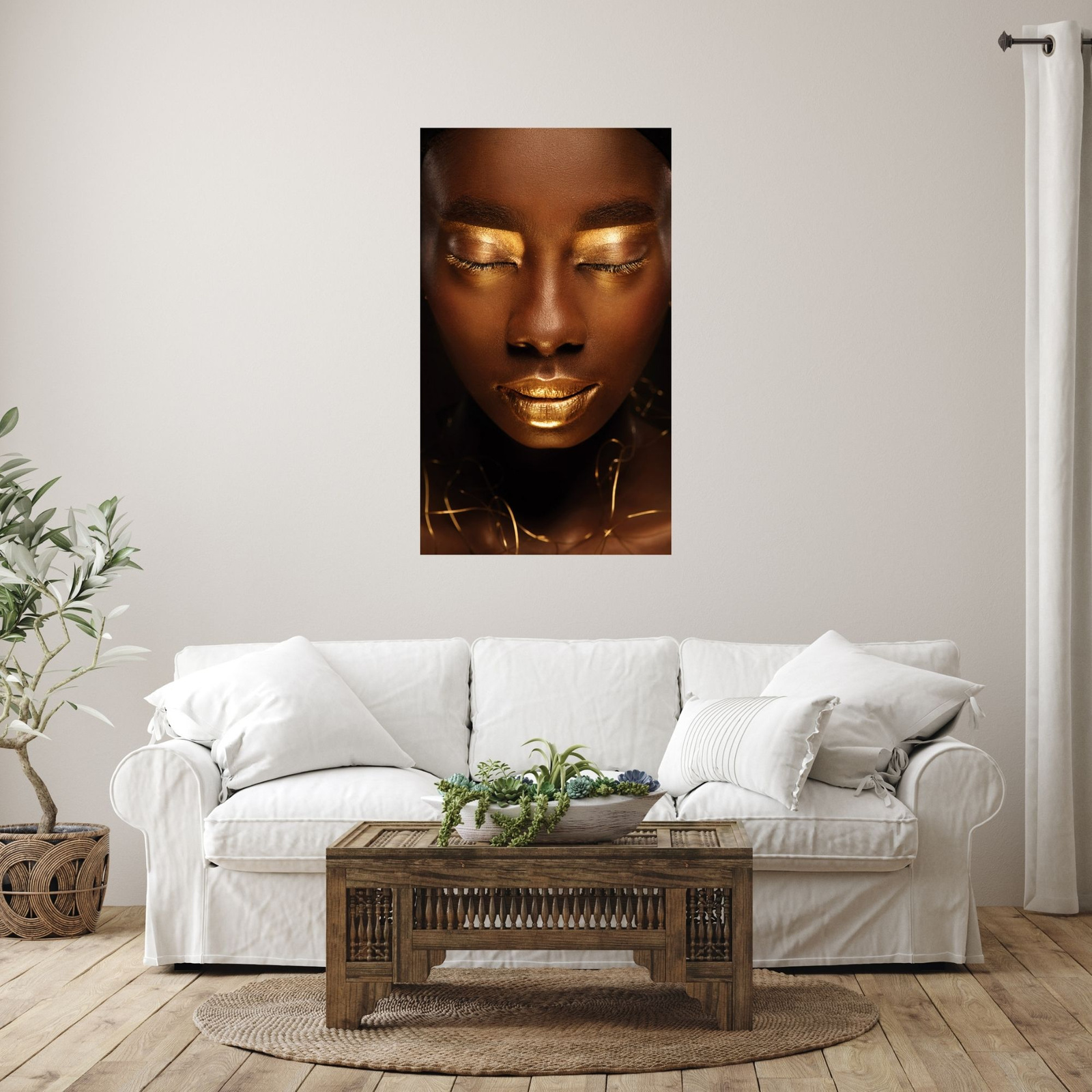 Leinwandgemälde Frauengesicht Goldene Elemente 80x120 cm
