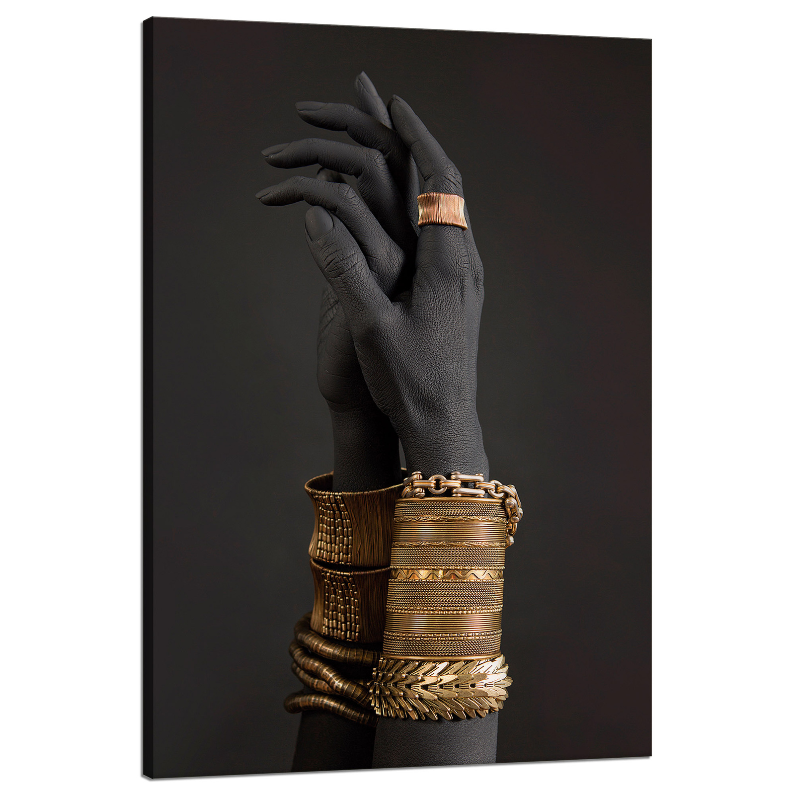 Leinwandgemälde Goldarmbänder an Händen und Schmuck 80x120 cm
