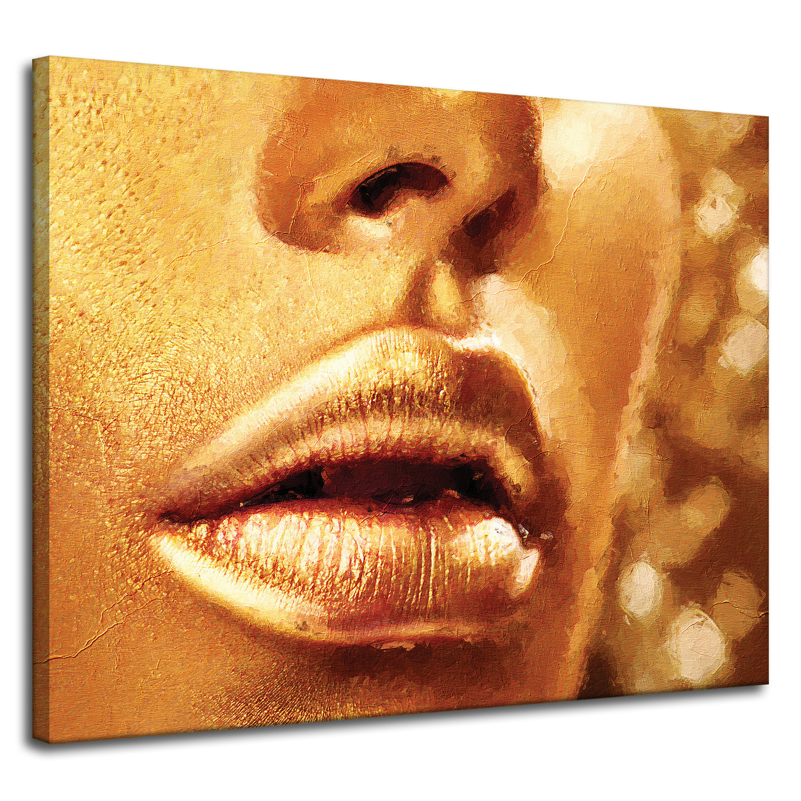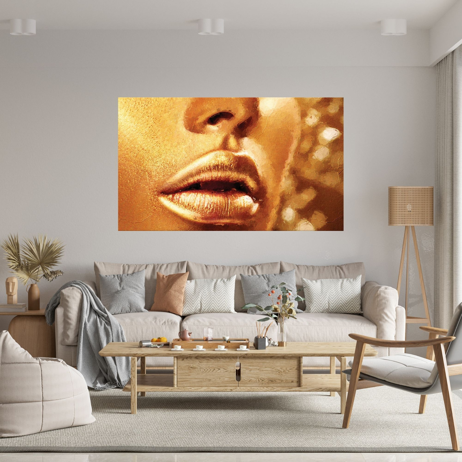 Leinwandgemälde Golden Face and Lips Art Style 100x80 cm