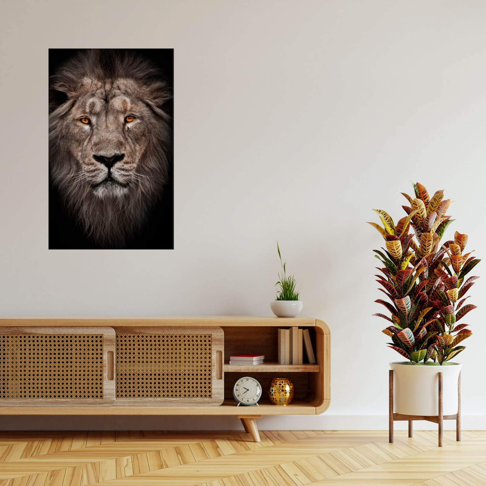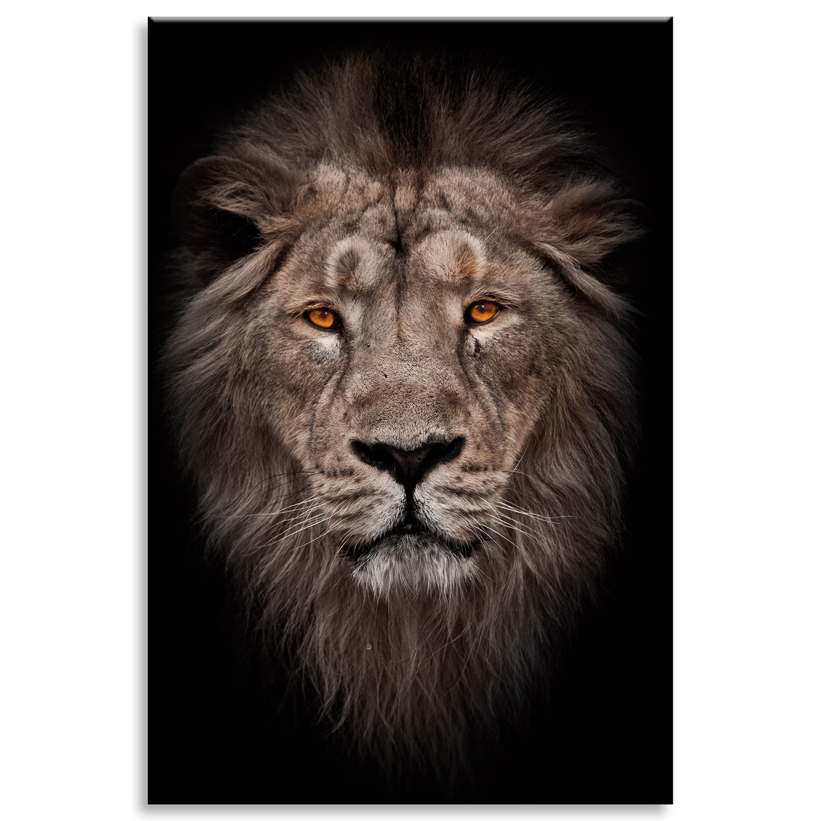 Leinwandgemälde Löwengesicht Rote Augen Wildheit 80x120 cm
