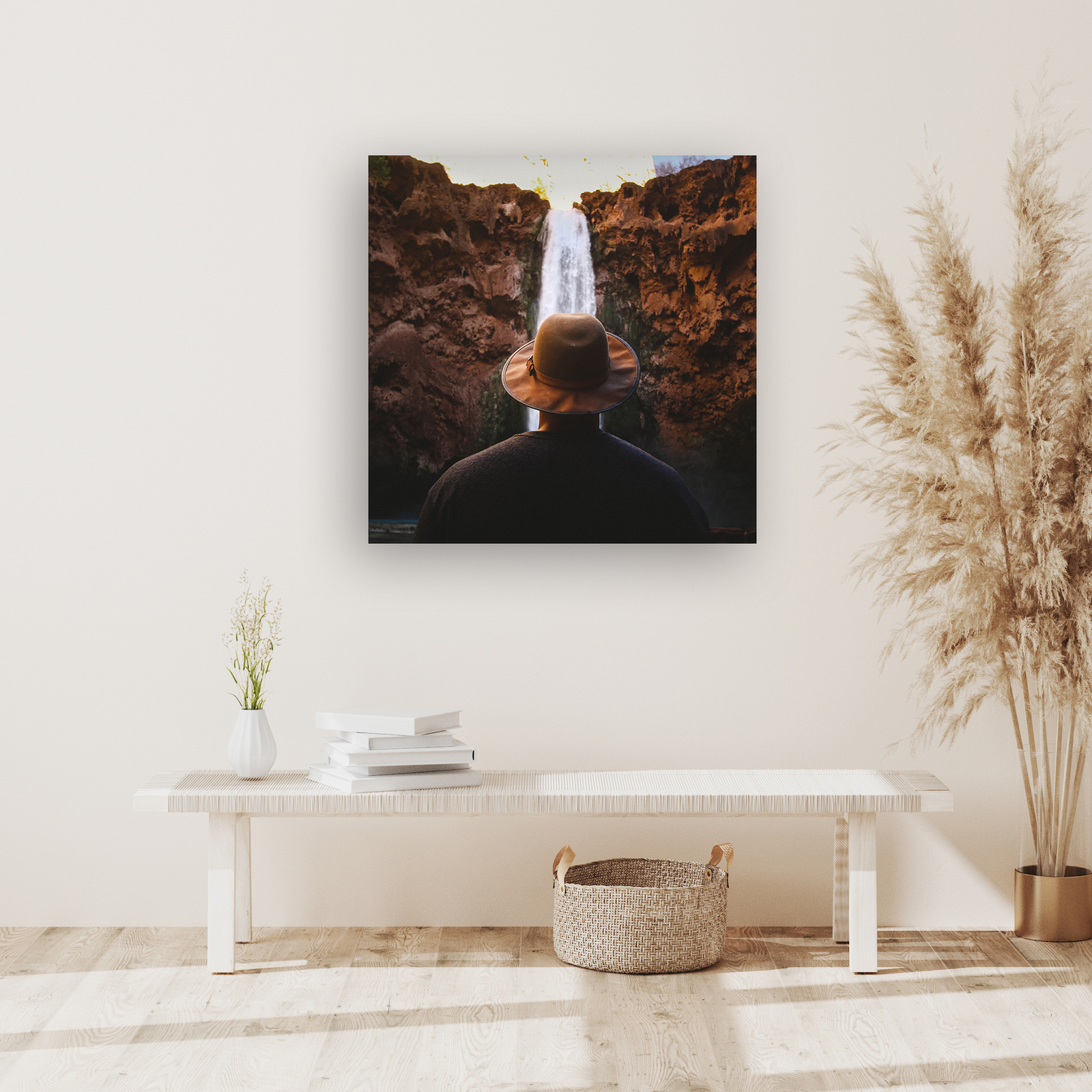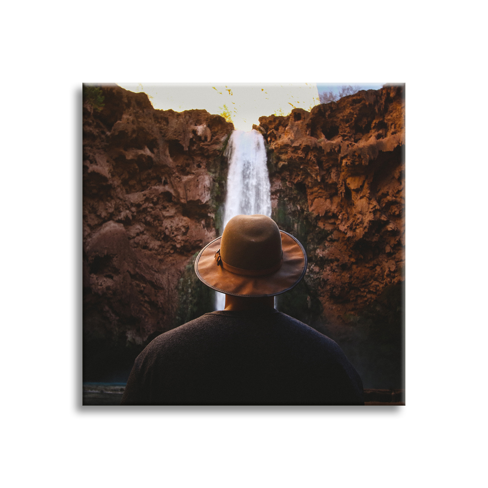 Leinwandgemälde Menschen Wasserfall Berge 90x90