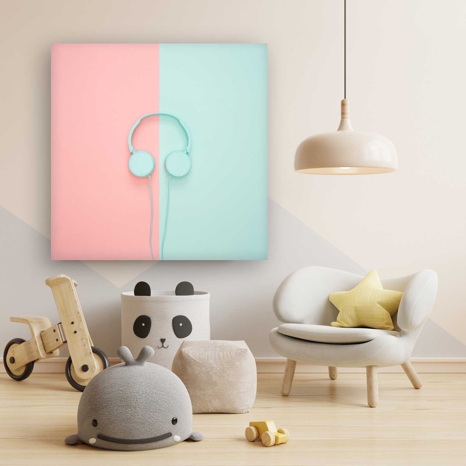 Leinwandgemälde Musik Kopfhörer Zweifarbig 90x90