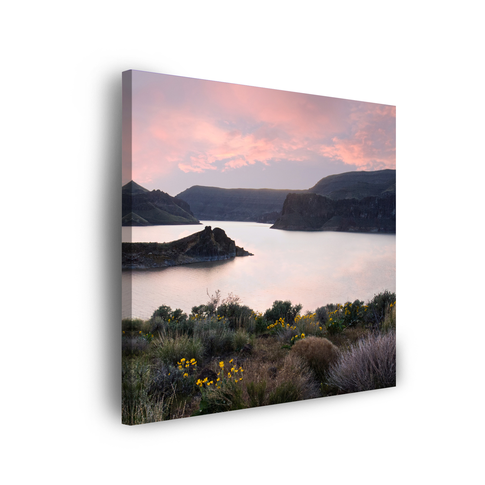 Leinwandgemälde Natur Berge Wasser Himmel Blumen Pflanzen 90x90