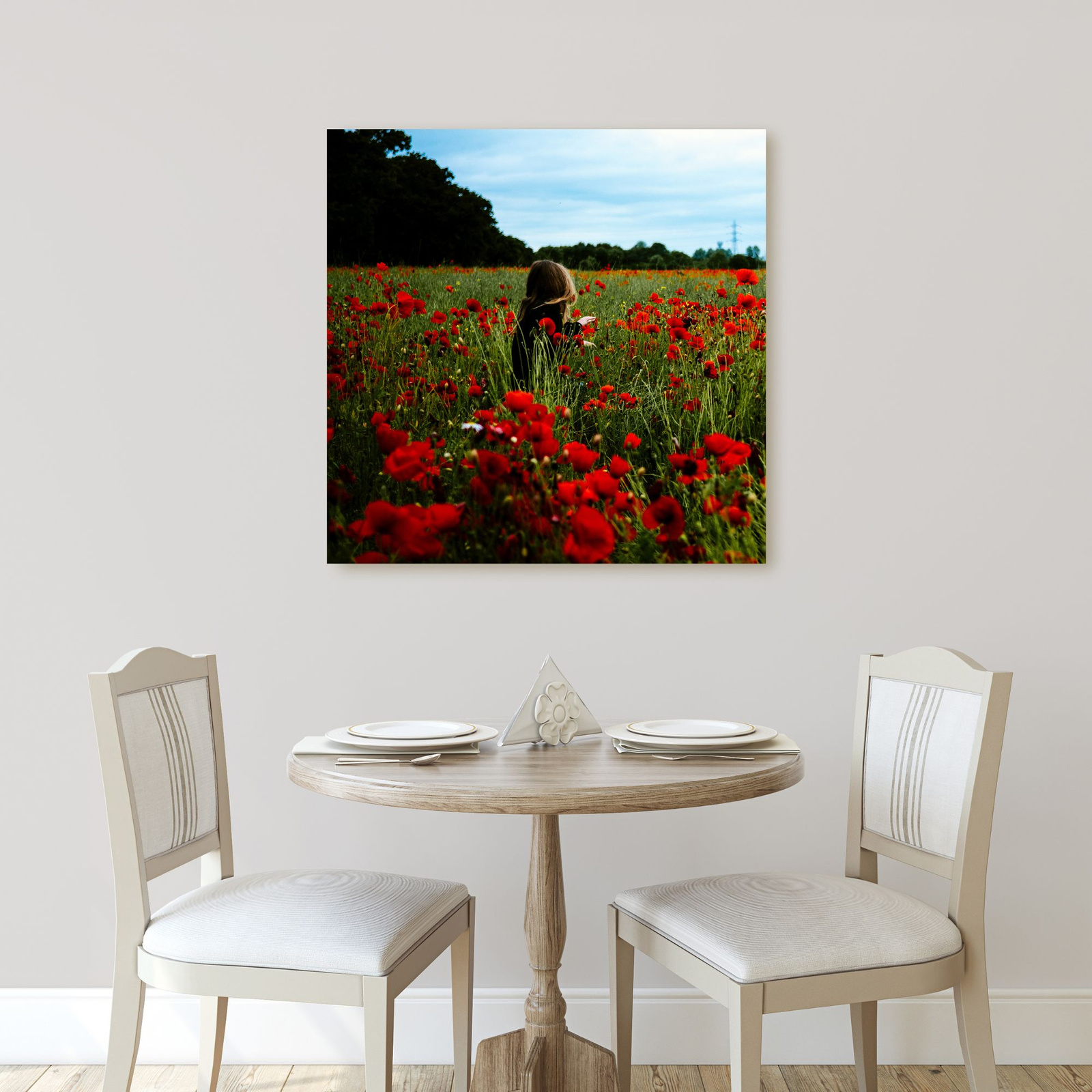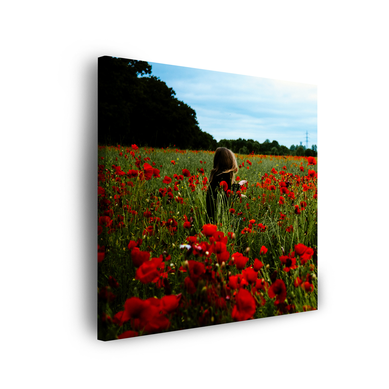 Leinwandgemälde Natur Frau in einem Mohnfeld 40x40 cm