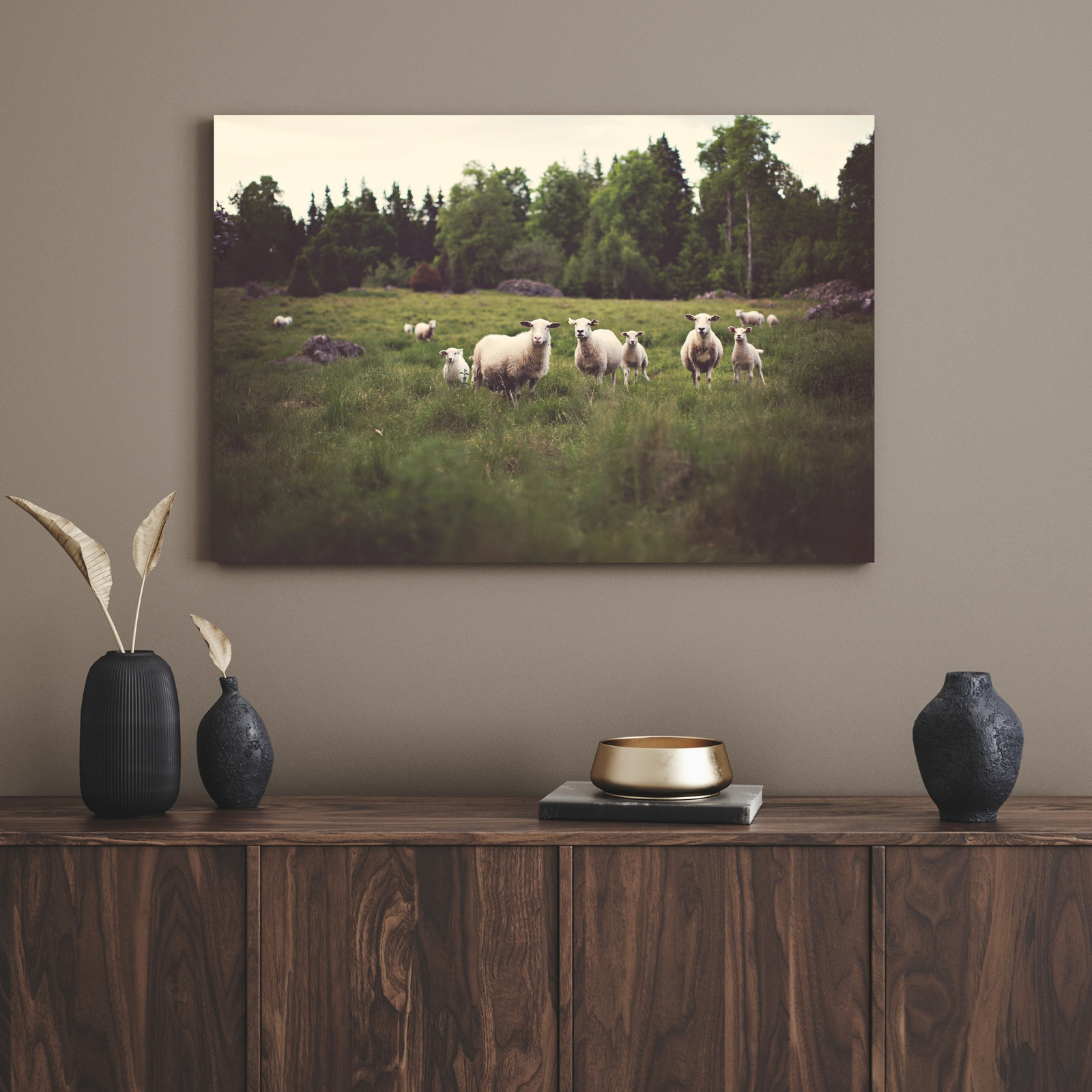 Leinwandgemälde Natur Schafe auf der Weide 40x30 cm