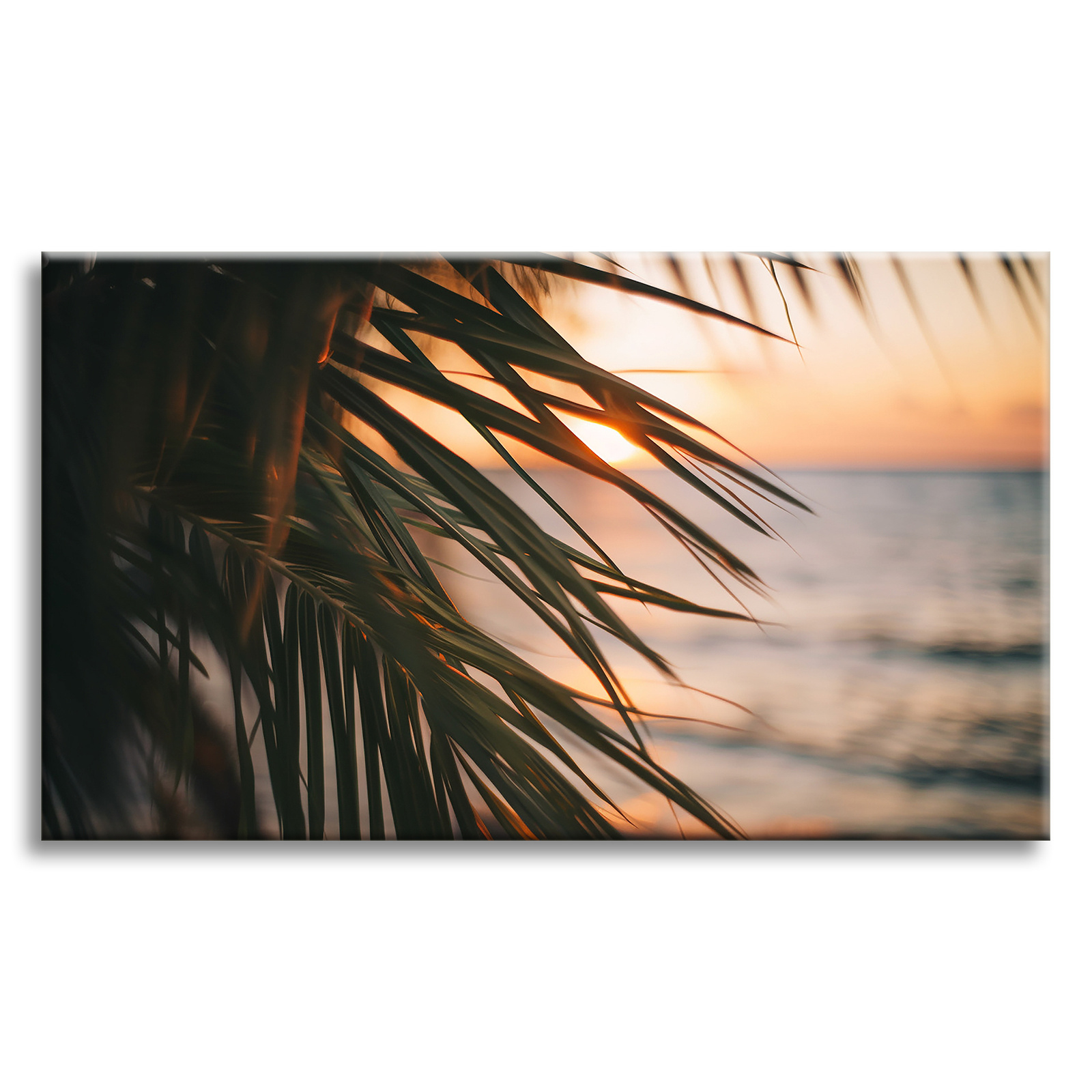 Leinwandgemälde Natur Strand Palme Meer Sonnenuntergang 90x60