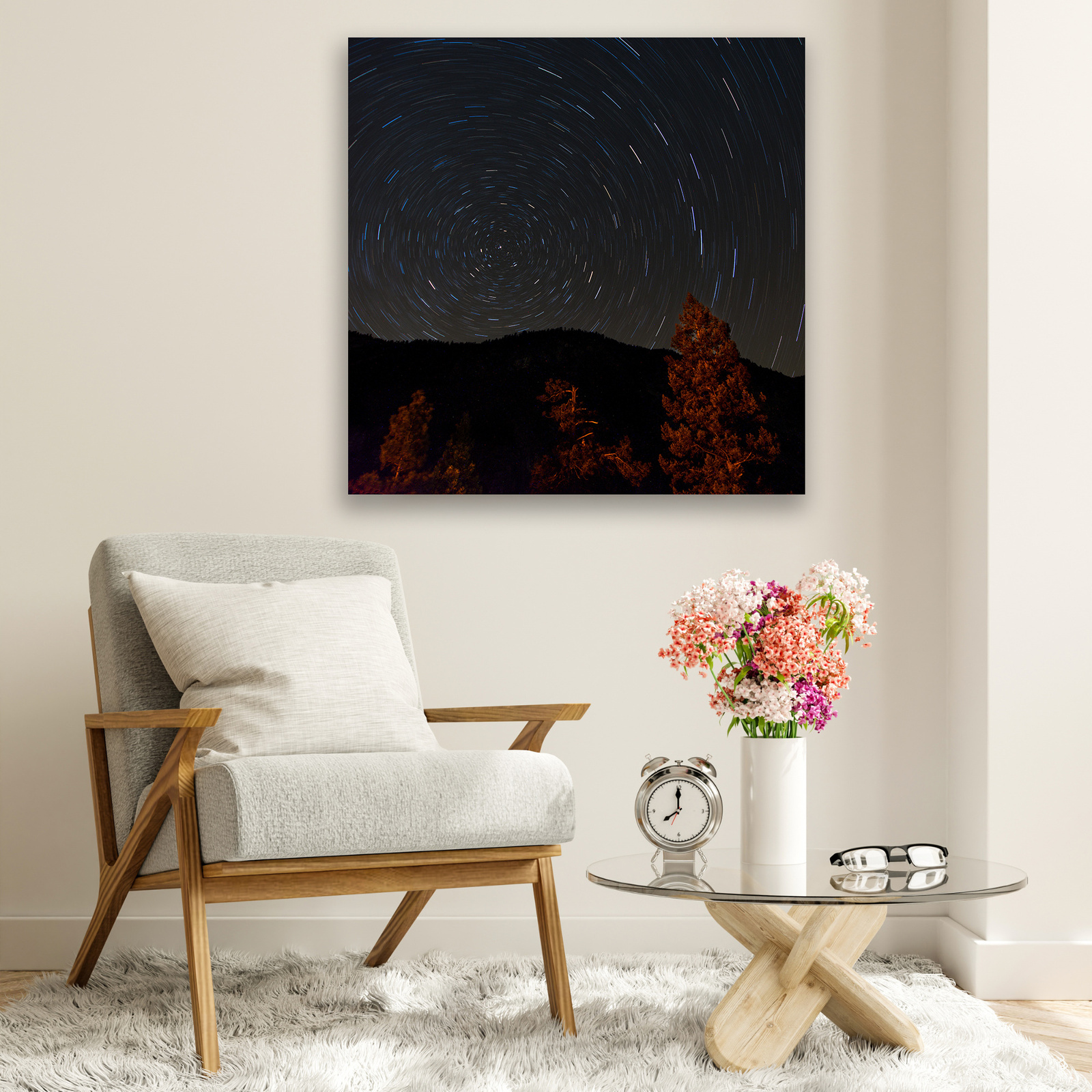 Leinwandgemälde Natur Wald Nacht Berge Abstraktion Bäume 90x90