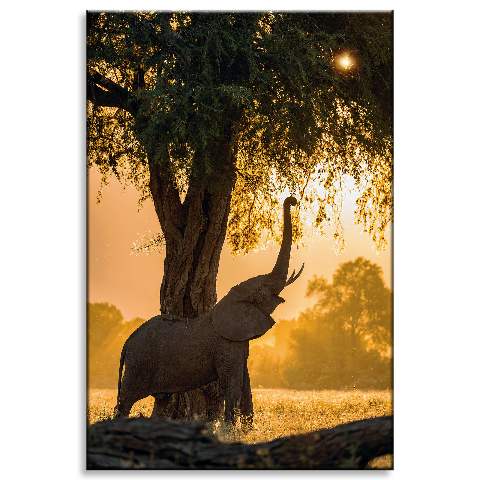 Leinwandgemälde Posierender Elefant Savannah Sunset 80x120 cm
