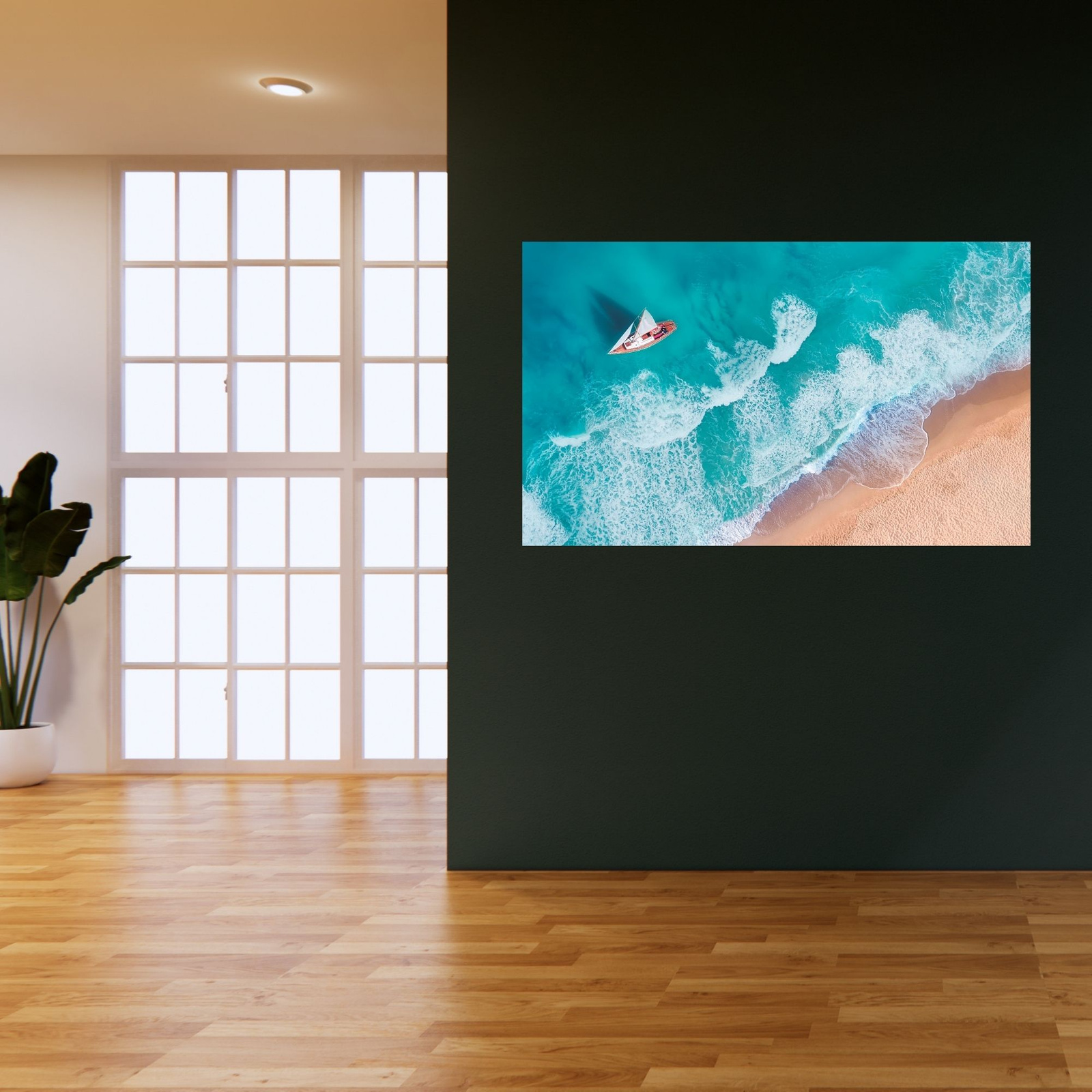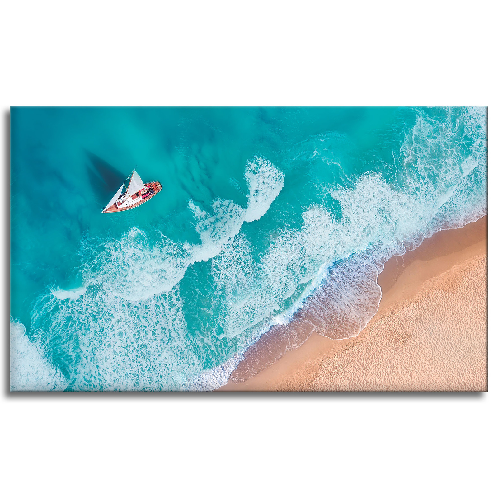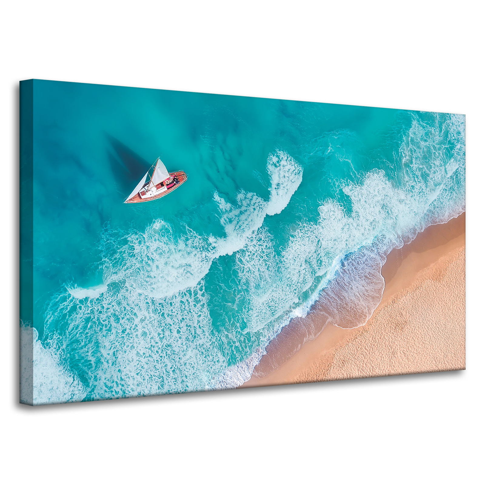 Leinwandgemälde Segelboot Wellen Sandufer 100x60 cm