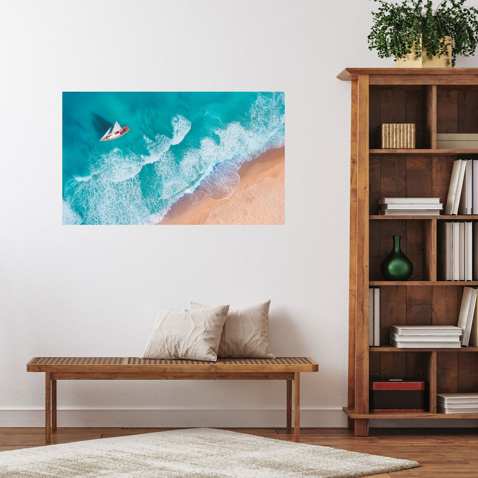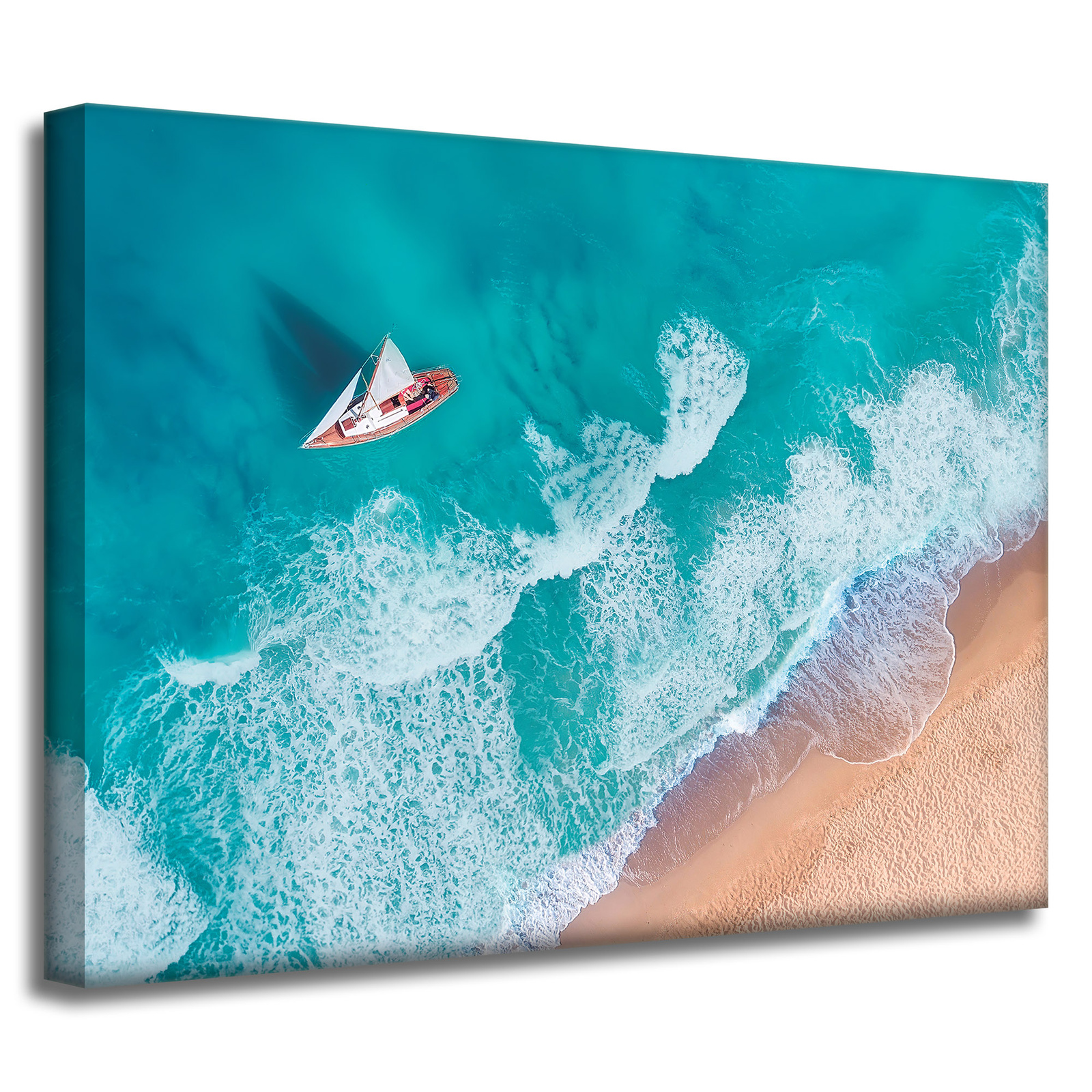 Leinwandgemälde Segelboot Wellen Sandufer 40x30 cm