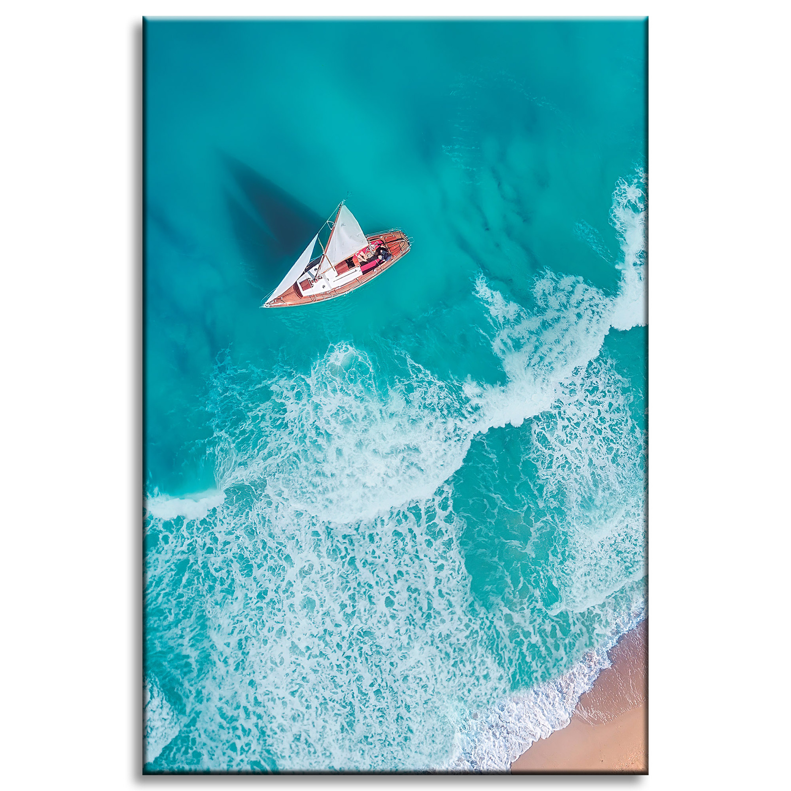 Leinwandgemälde Segelboot Wellen Sandufer 40x60 cm