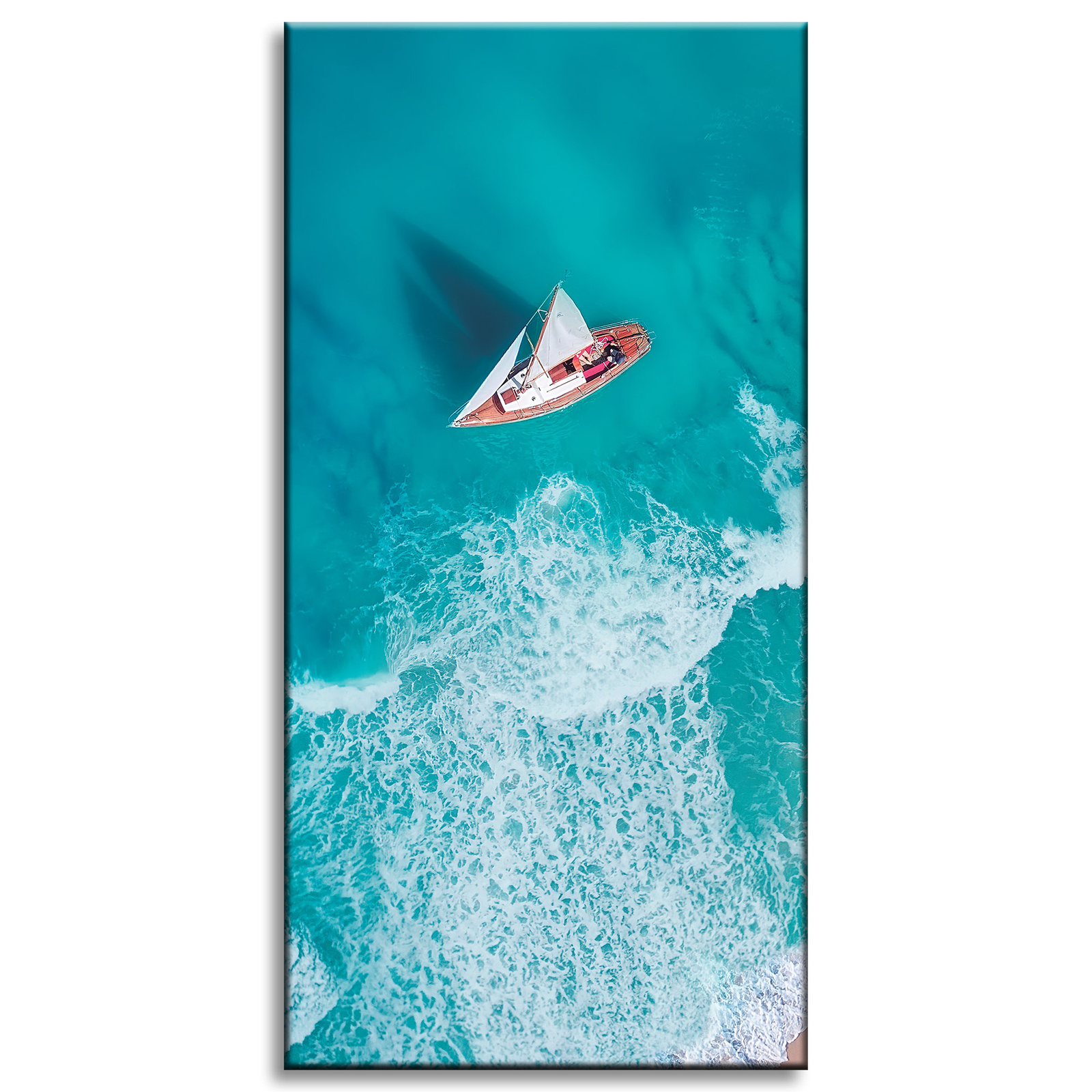 Leinwandgemälde Segelboot Wellen Sandufer 40x80 cm