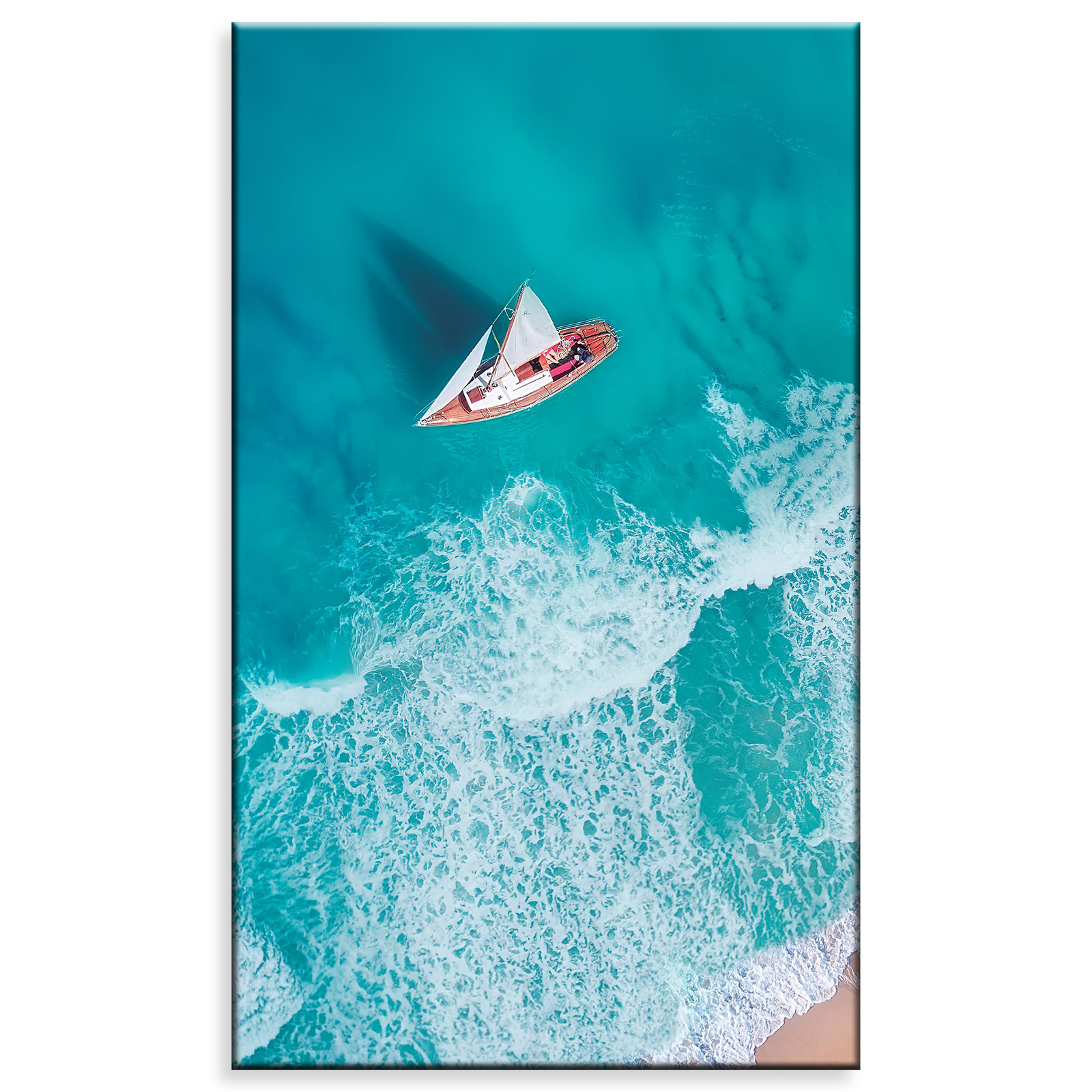 Leinwandgemälde Segelboot Wellen Sandufer 60x100 cm