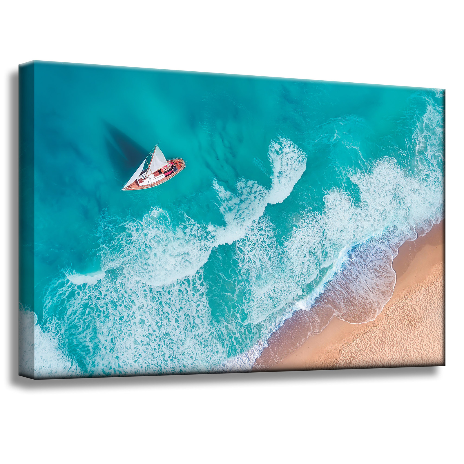 Leinwandgemälde Segelboot Wellen Sandufer 60x40 cm