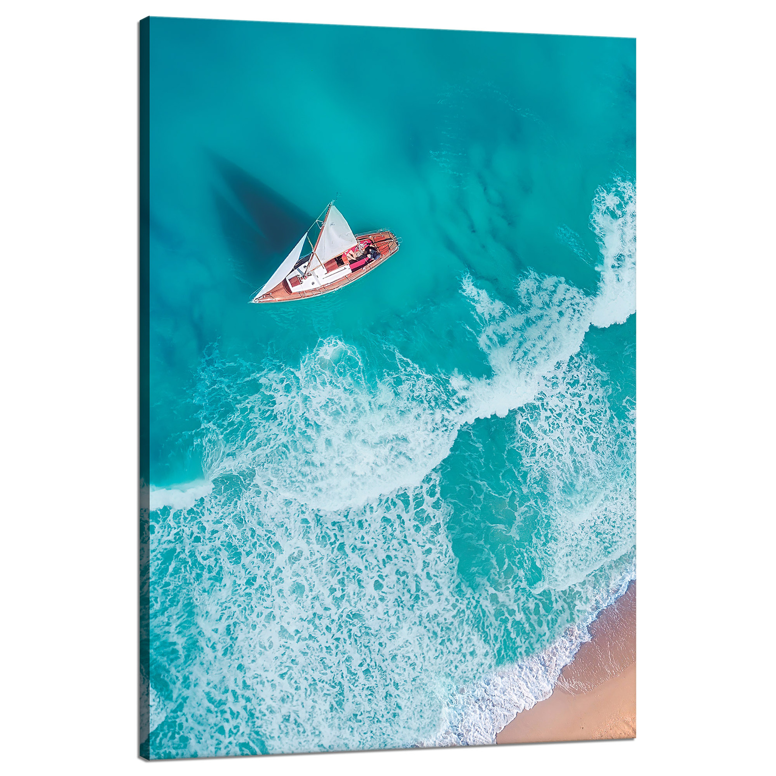 Leinwandgemälde Segelboot Wellen Sandufer 80x120 cm
