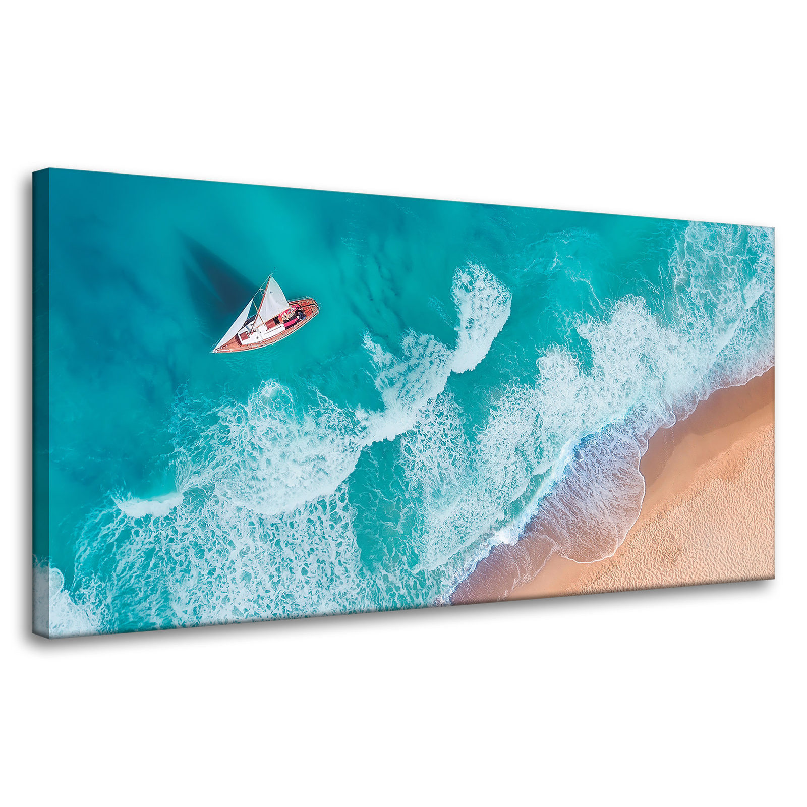Leinwandgemälde Segelboot Wellen Sandufer 80x40 cm