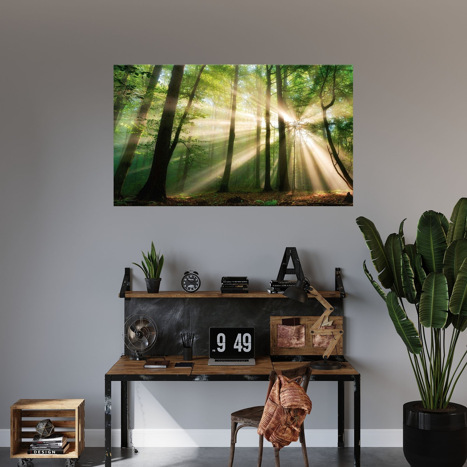 Leinwandgemälde Sonne im Wald Bäume Natur 120x80 cm