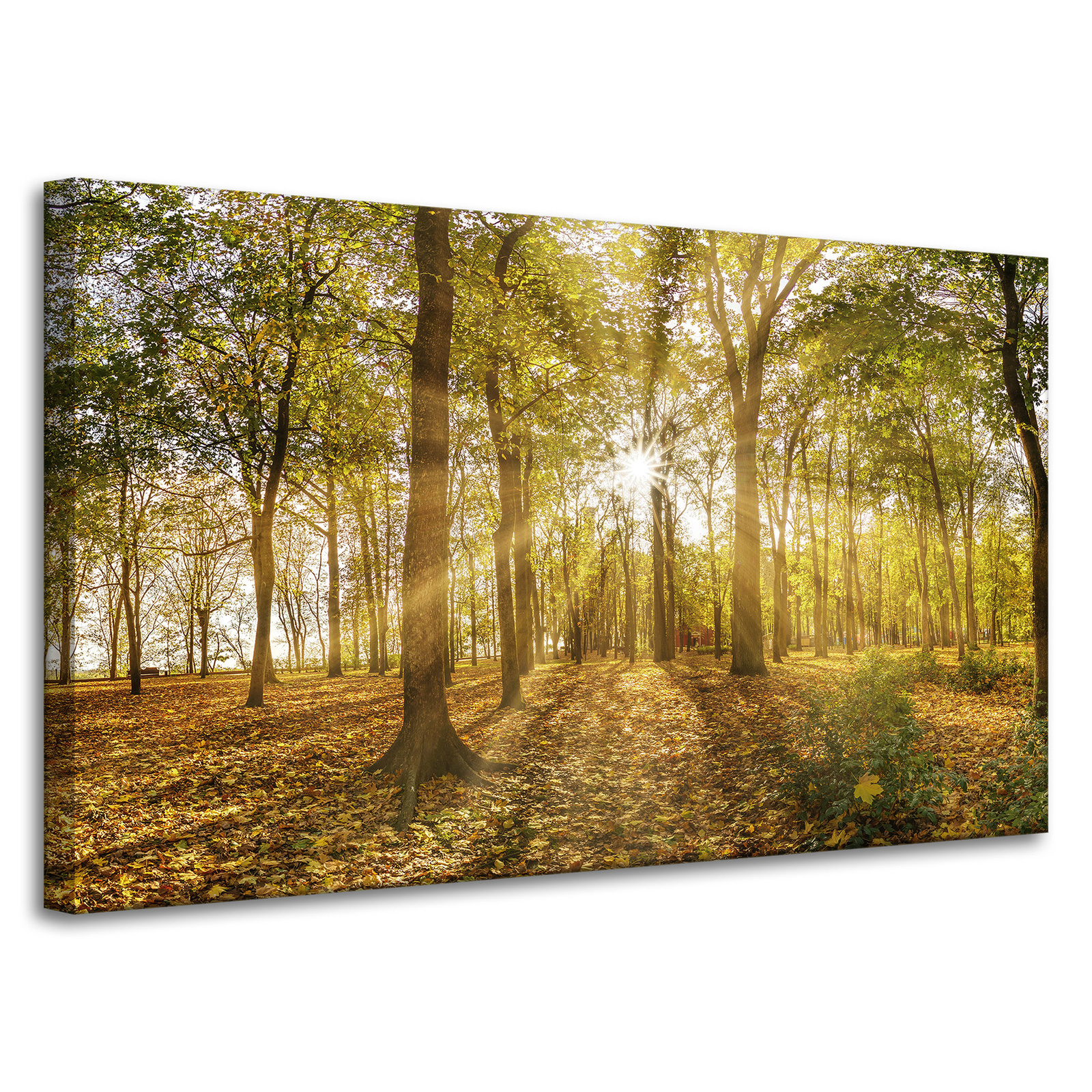 Leinwandgemälde Sonne zwischen Bäumen im Wald 100x60 cm