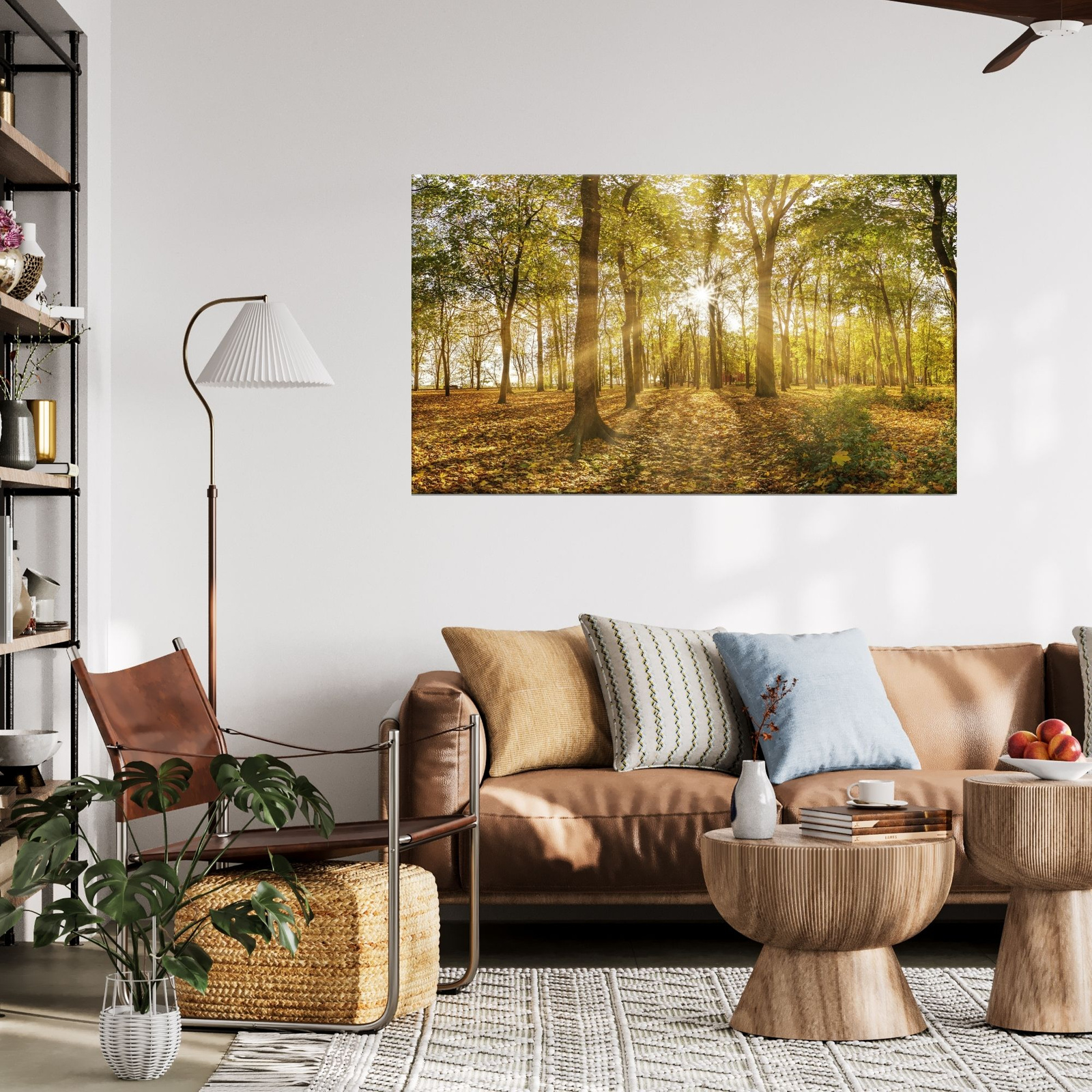 Leinwandgemälde Sonne zwischen Bäumen im Wald 120x80 cm