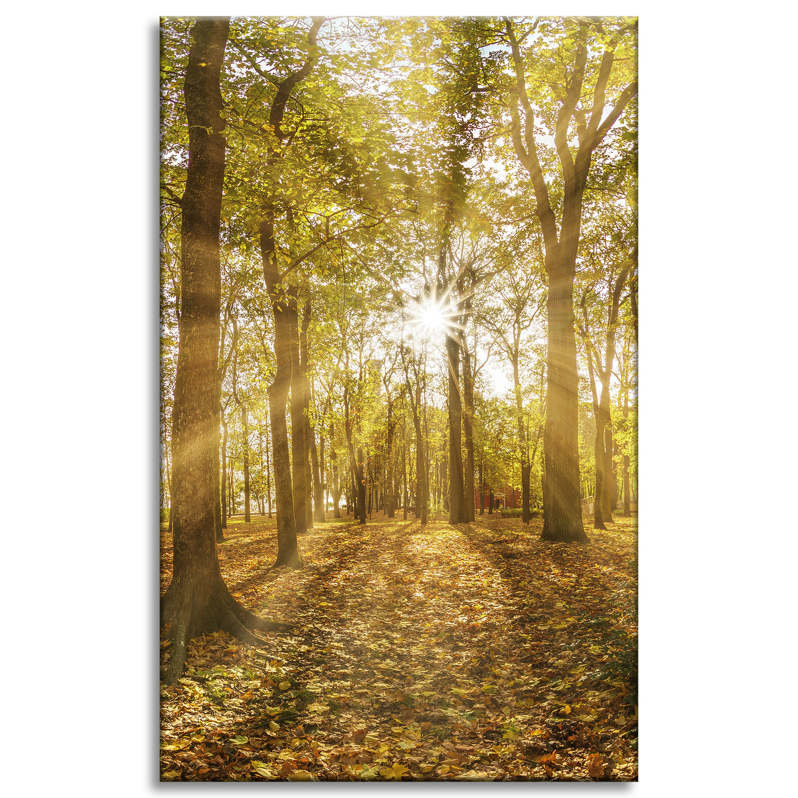 Leinwandgemälde Sonne zwischen Bäumen im Wald 50x80 cm