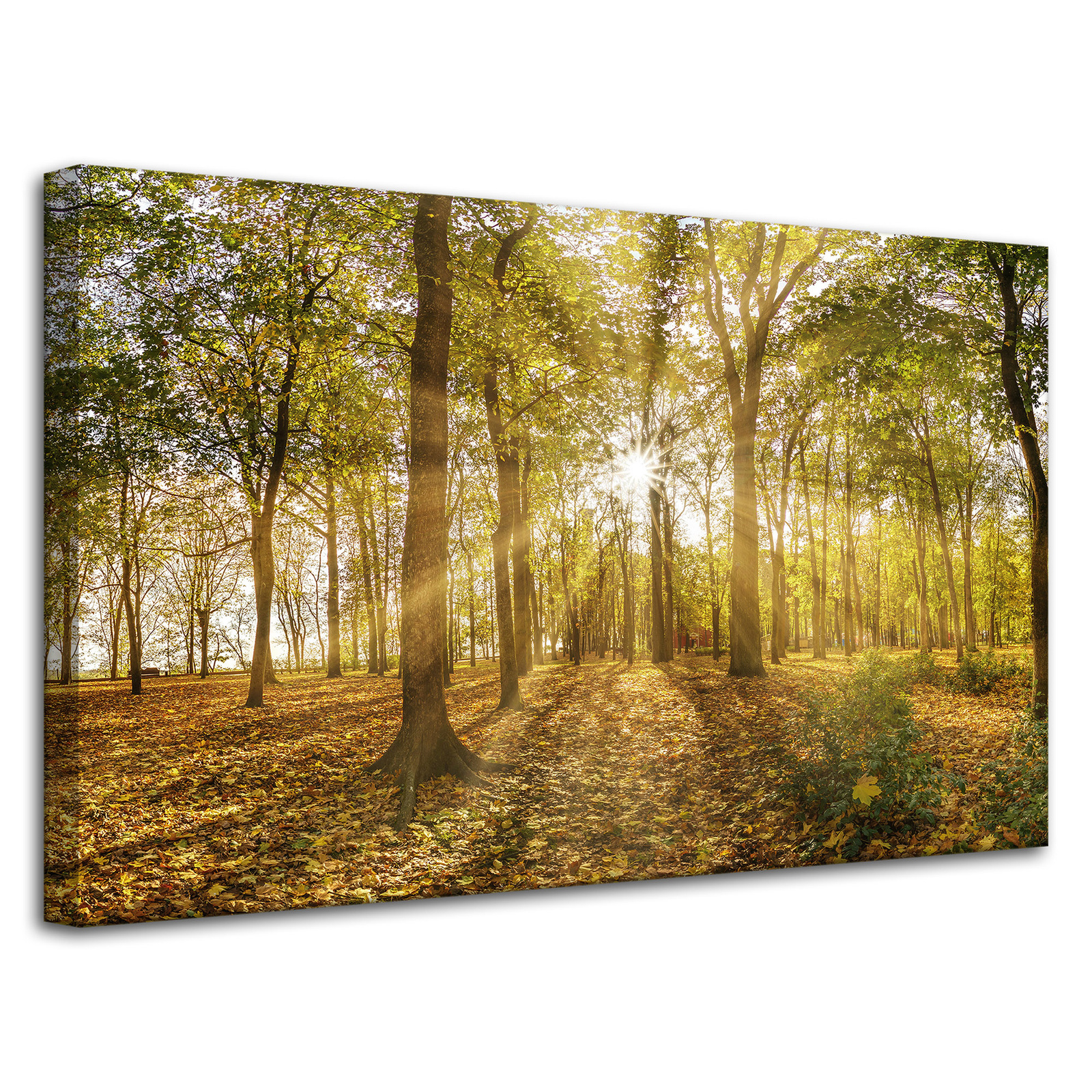 Leinwandgemälde Sonne zwischen Bäumen im Wald 80x50 cm
