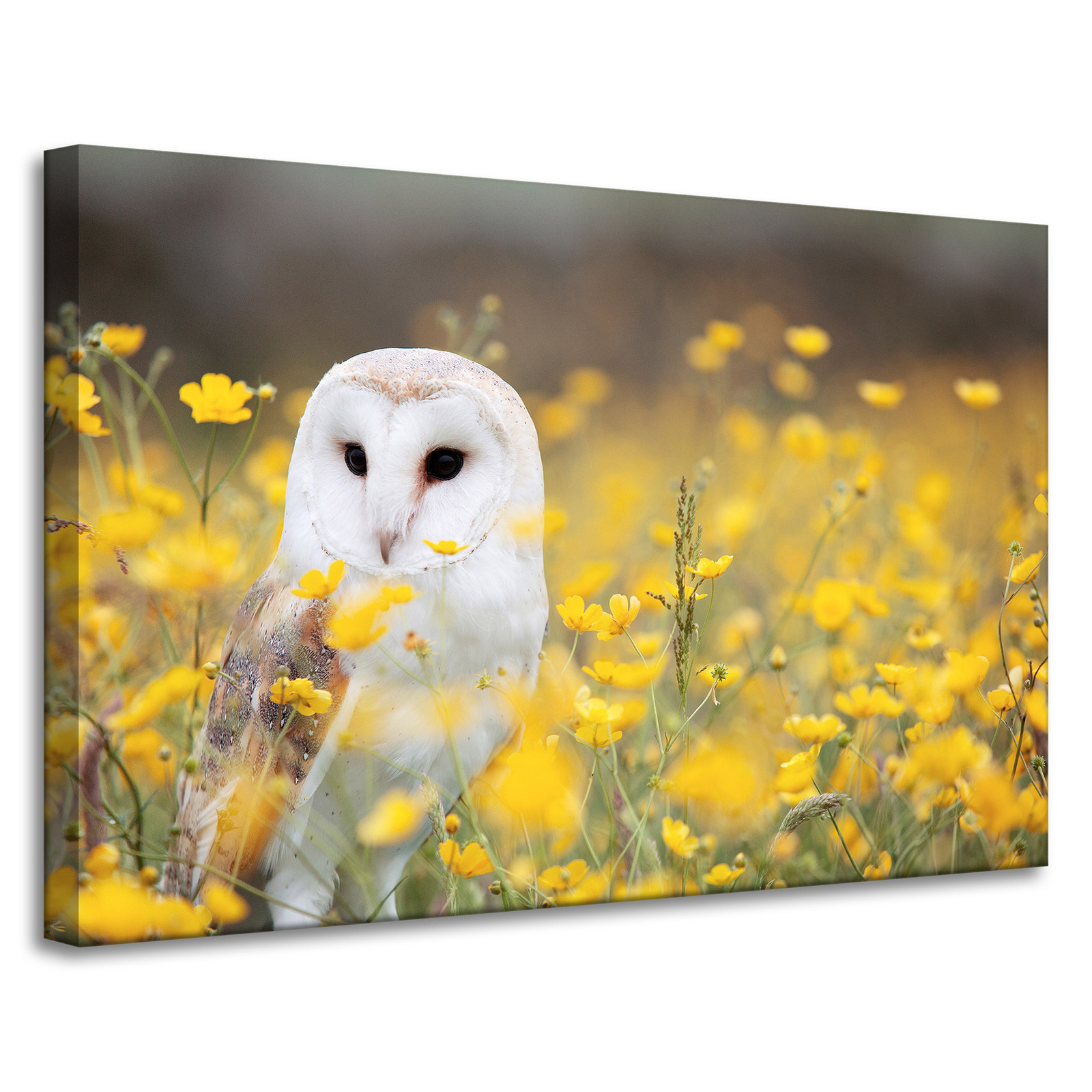 Leinwandgemälde Weiße Eule Blumen Natur Wiese 90x60