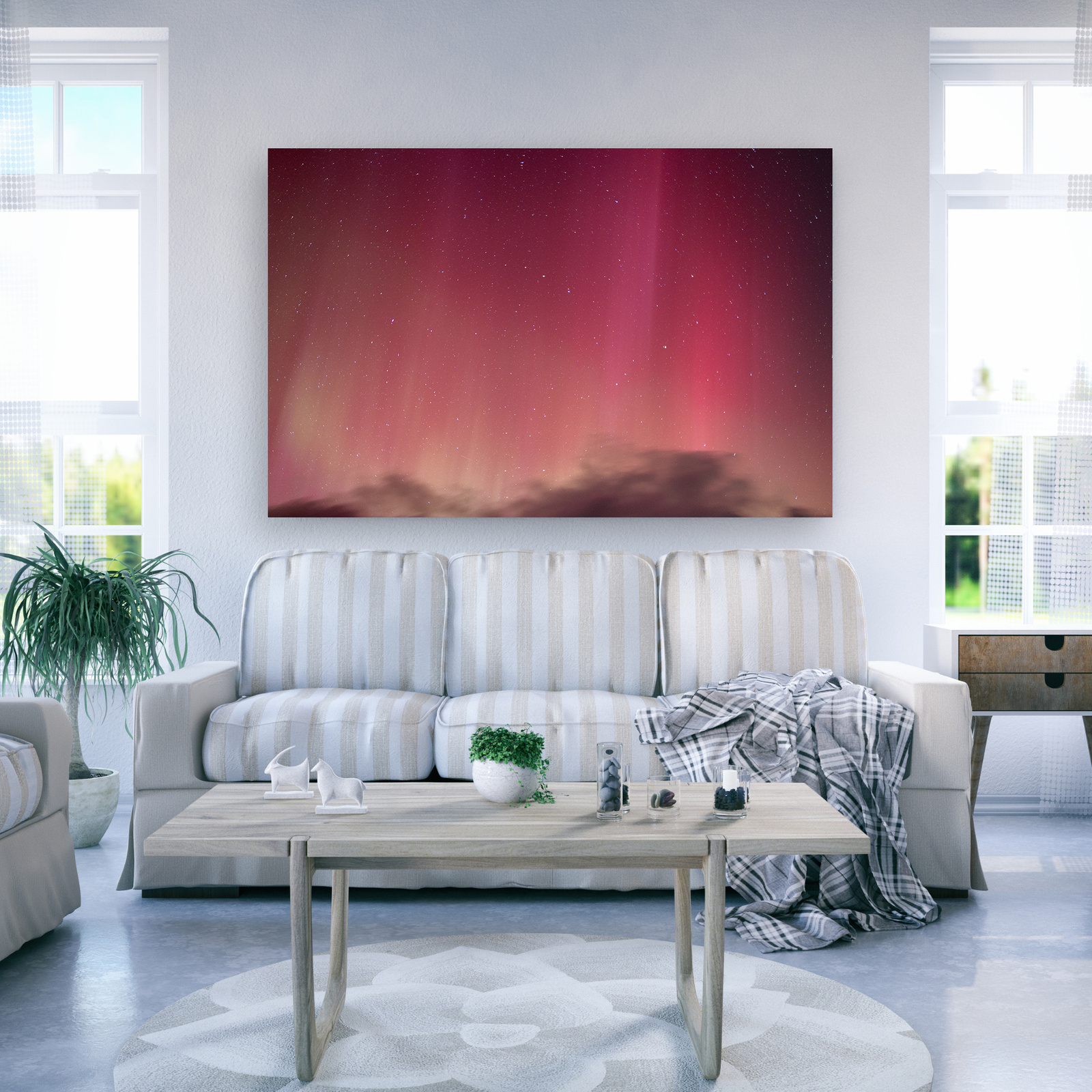 Leinwandgemälde Weltraum Aurora Borealis Roter Himmel 90x60