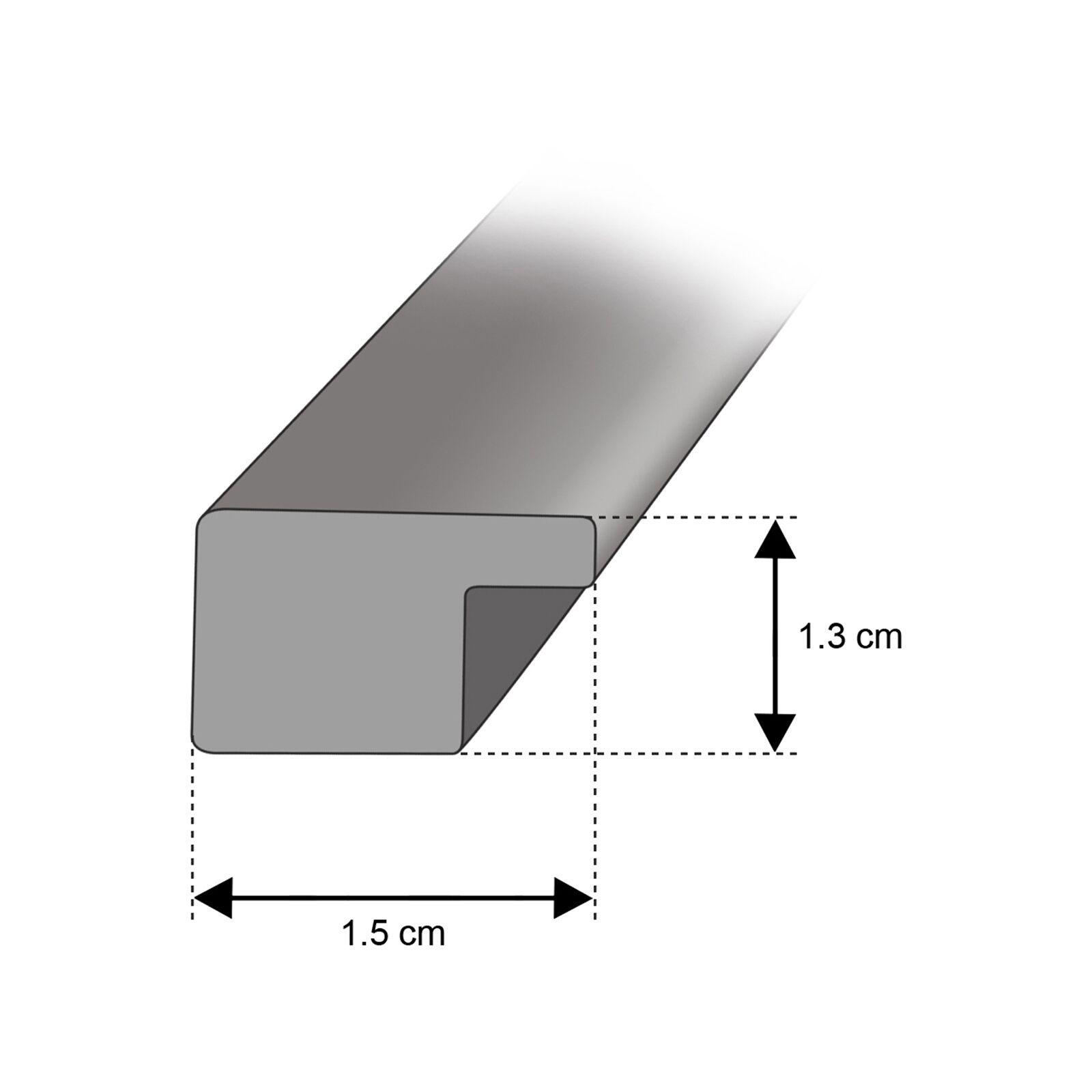 Rahmen aus Polystyrol sind feuchtigkeits- und schimmelresistent und enthalten keine Formaldehyde. Sie sind umweltfreundlich und recycelbar. Die Abmessungen des Rahmenprofils betragen 15 mm x 13 mm.