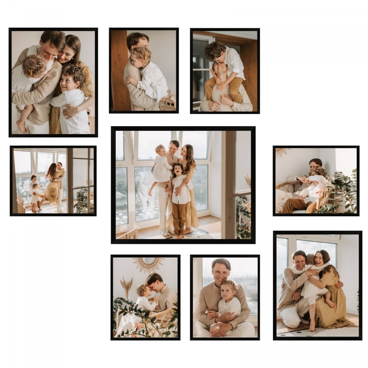 SET aus schwarzen Multirama-Galerie-Fotorahmen – 9 Stück + Vorlage
