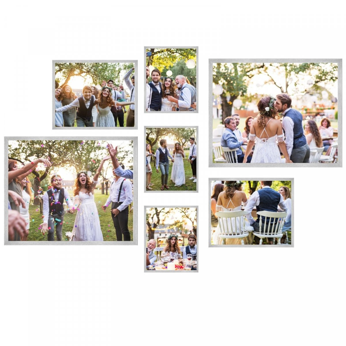 SET aus silbernen Galerie-Fotorahmen von Multirama – 7 Stück + Vorlage