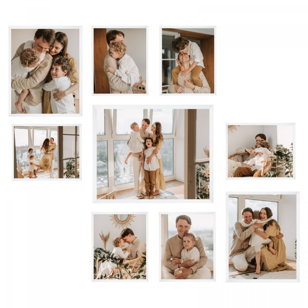 SET aus weißen Bilderrahmen der Multirama-Galerie – 9 Stück + Vorlage