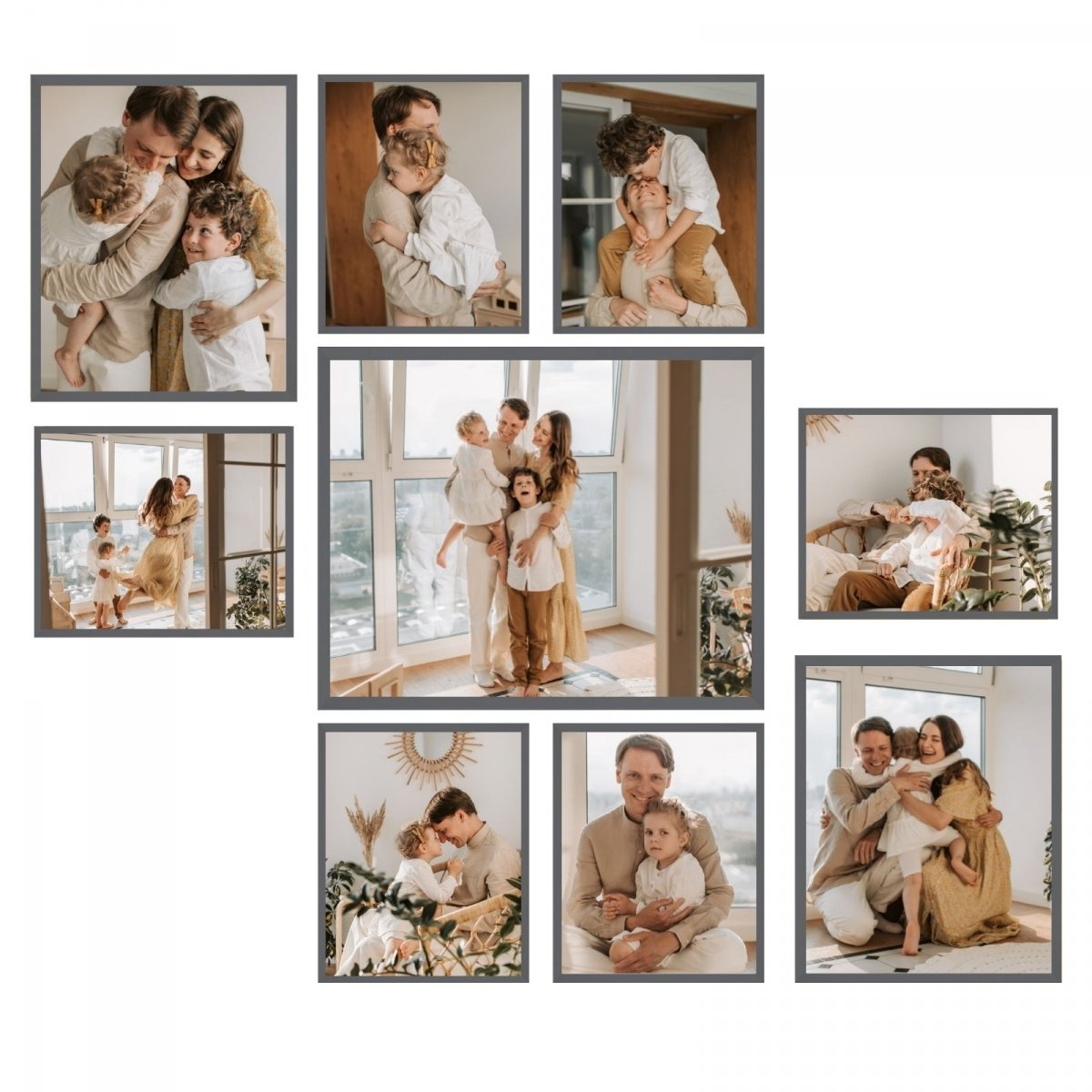 SET mit Multirama-Galerie-Bilderrahmen in Grau – 9 Stück + Vorlage